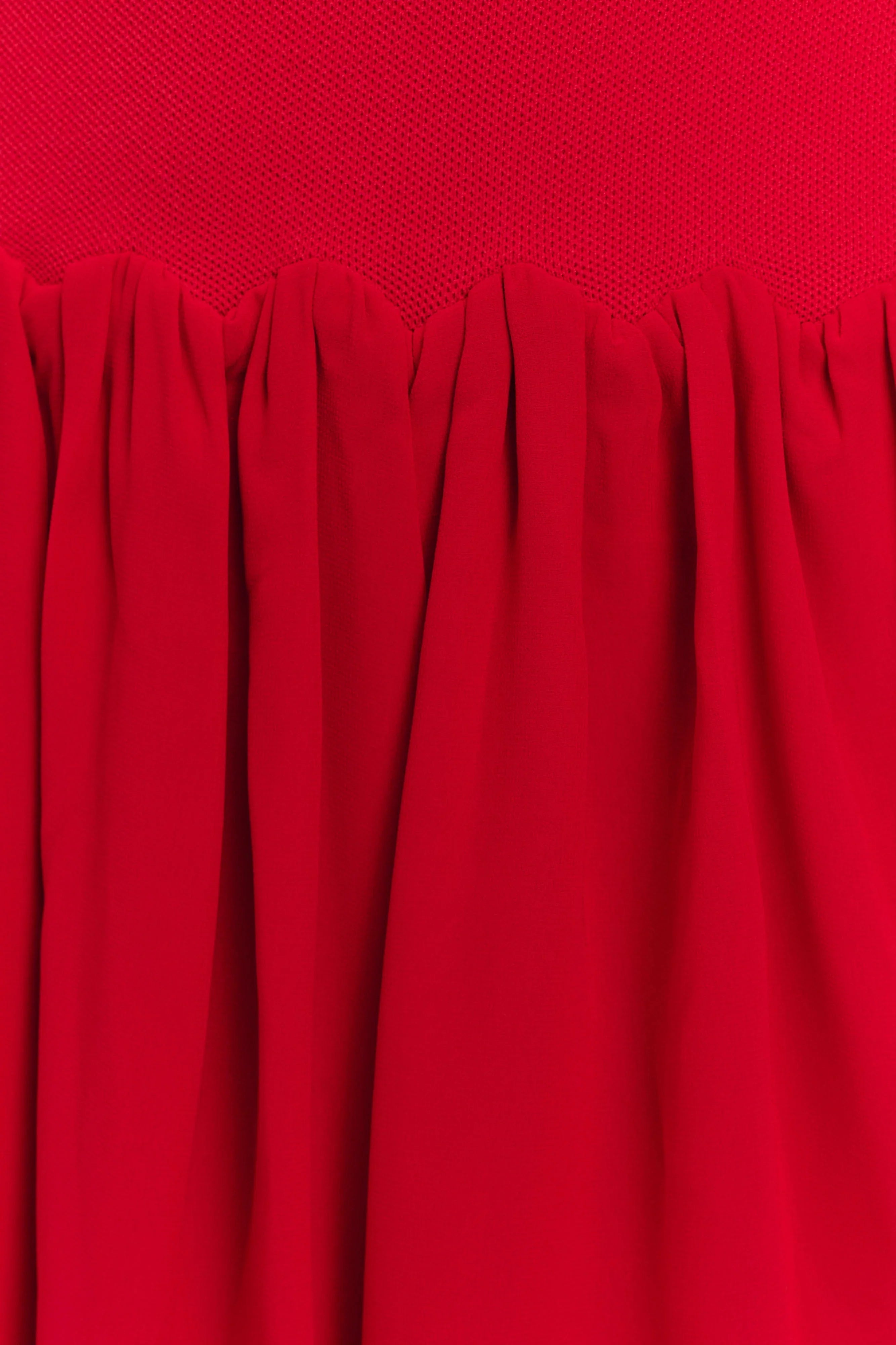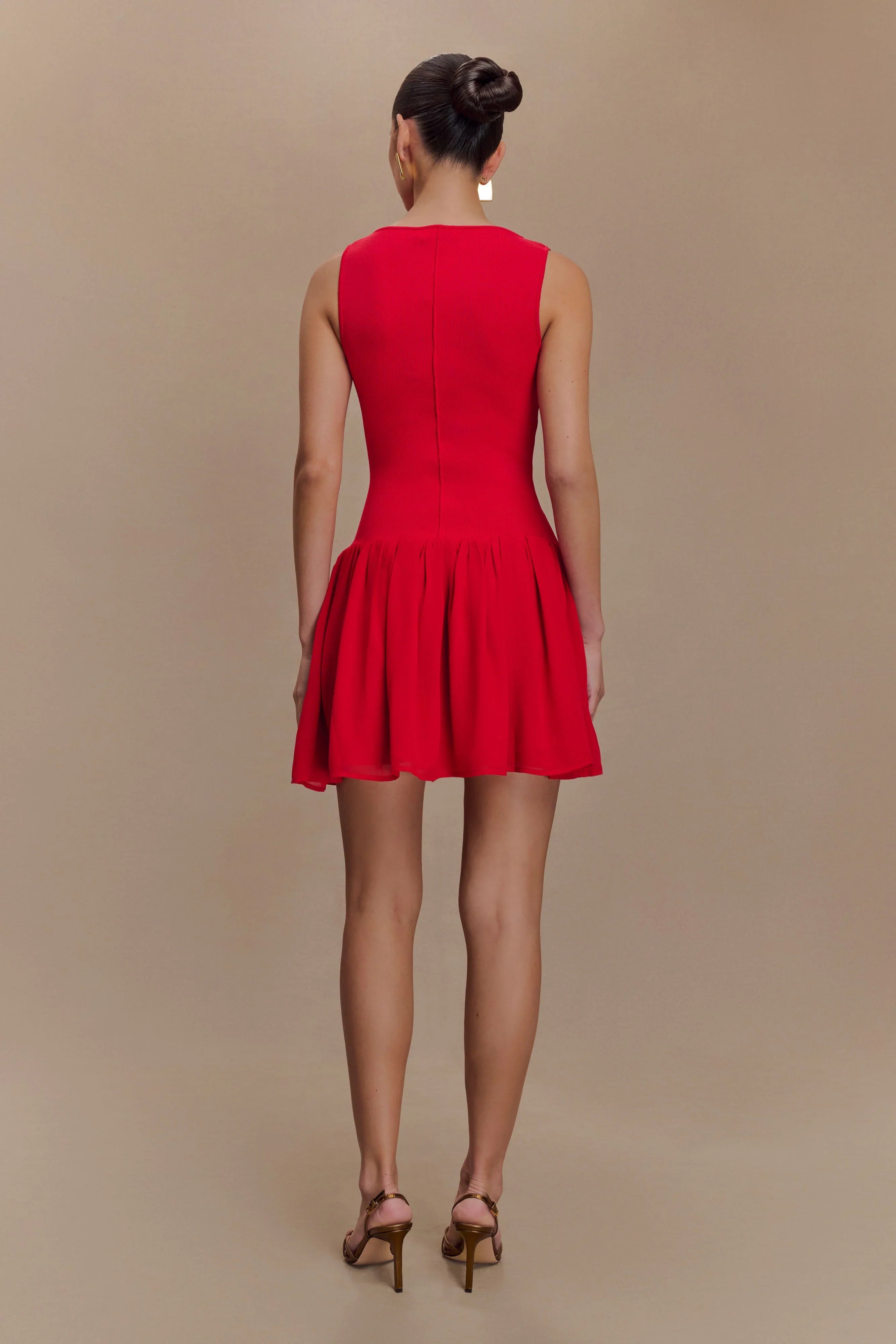 The ASHLEIGH Knit and Chiffon Mini Dress is a chic blend of textures and modern design. Featuring a fitted, knitted bodice that hugs your shape in a bodycon fit, this dress is accented by a playful zigzag waist detail that transitions seamlessly into a flowy chiffon skirt. The mini length and sleeveless cut give it a fresh, versatile look, perfect for day-to-night styling. With its unique contrast of knit and chiffon, this dress combines elegance and edge for a look that's both sophisticated and fun.