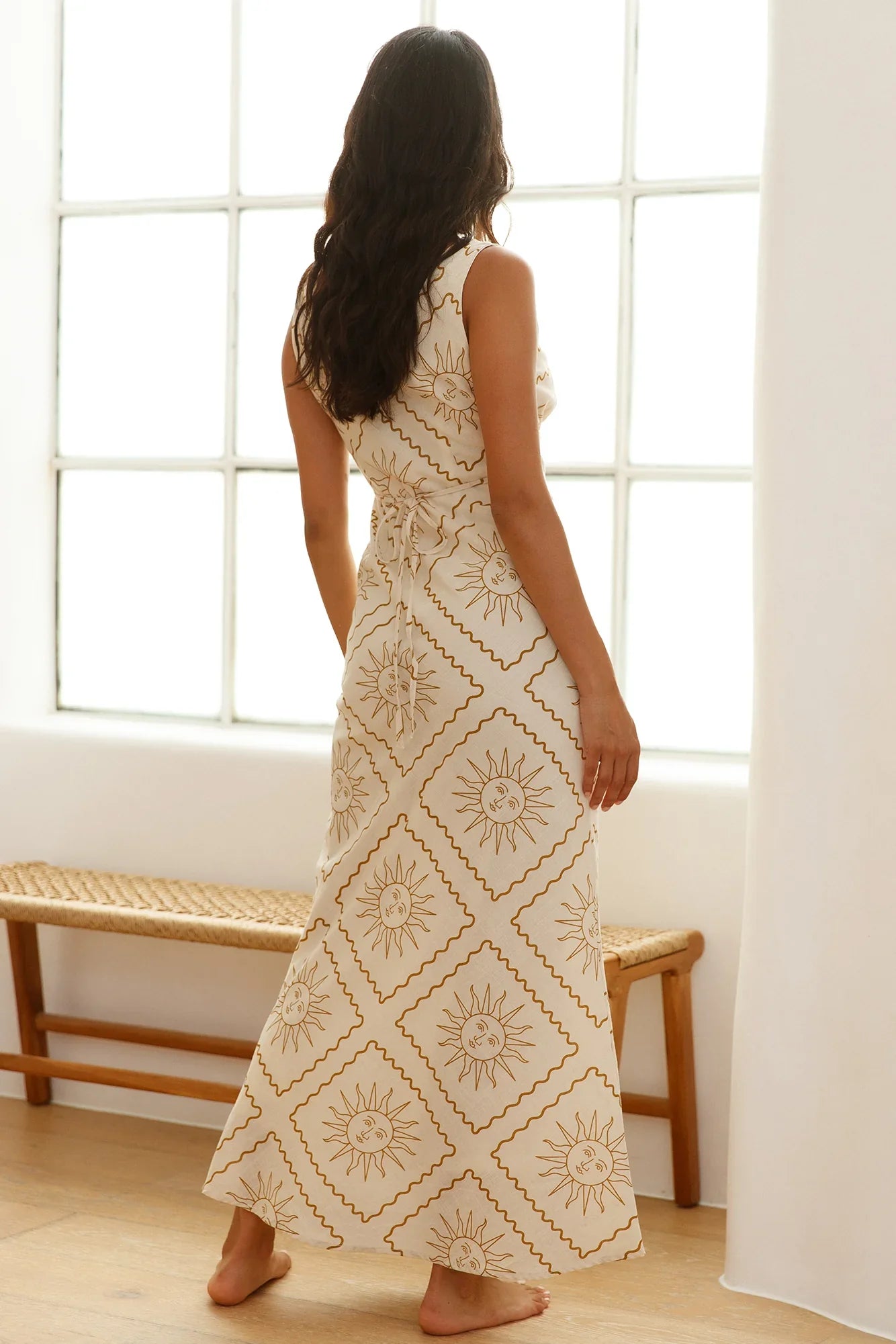 Enjoy the hot breeze in a summer city wearing the Breezy Blaze Maxi Dress in Beige. Pair this with black platform sandals and black sunnies to complete the look.