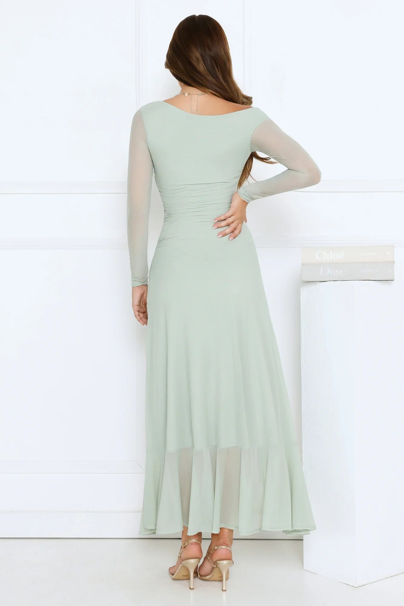 Make a statement in the Darling At Dusk Long Sleeve Maxi Dress. Made in stretch mesh with a shoulder cutout, sheer long sleeves, and a frilled split skirt, this maxi is perfect for parties, date nights, or special occasions. Pair with strappy heels and jewellery to complete the look.