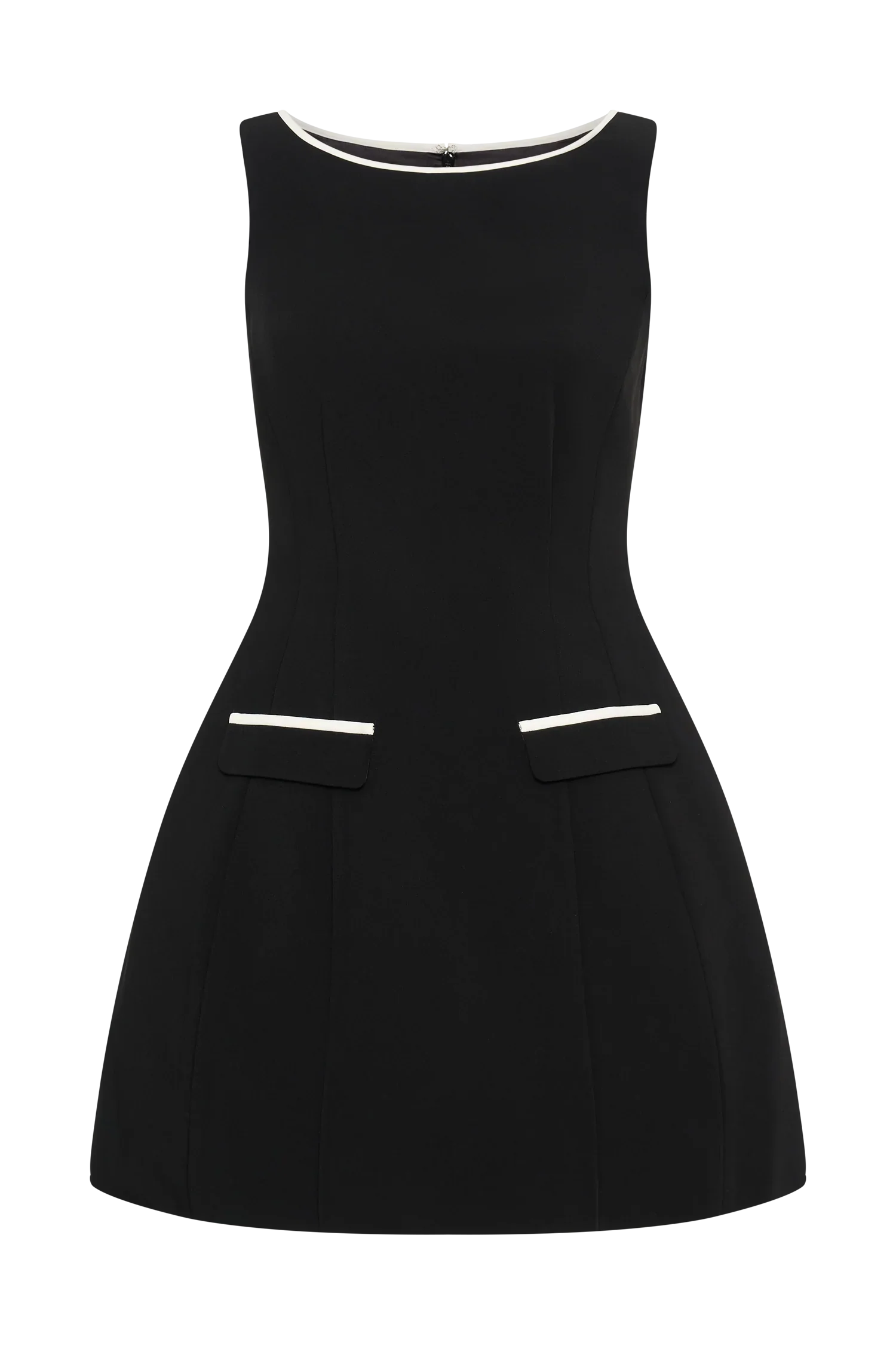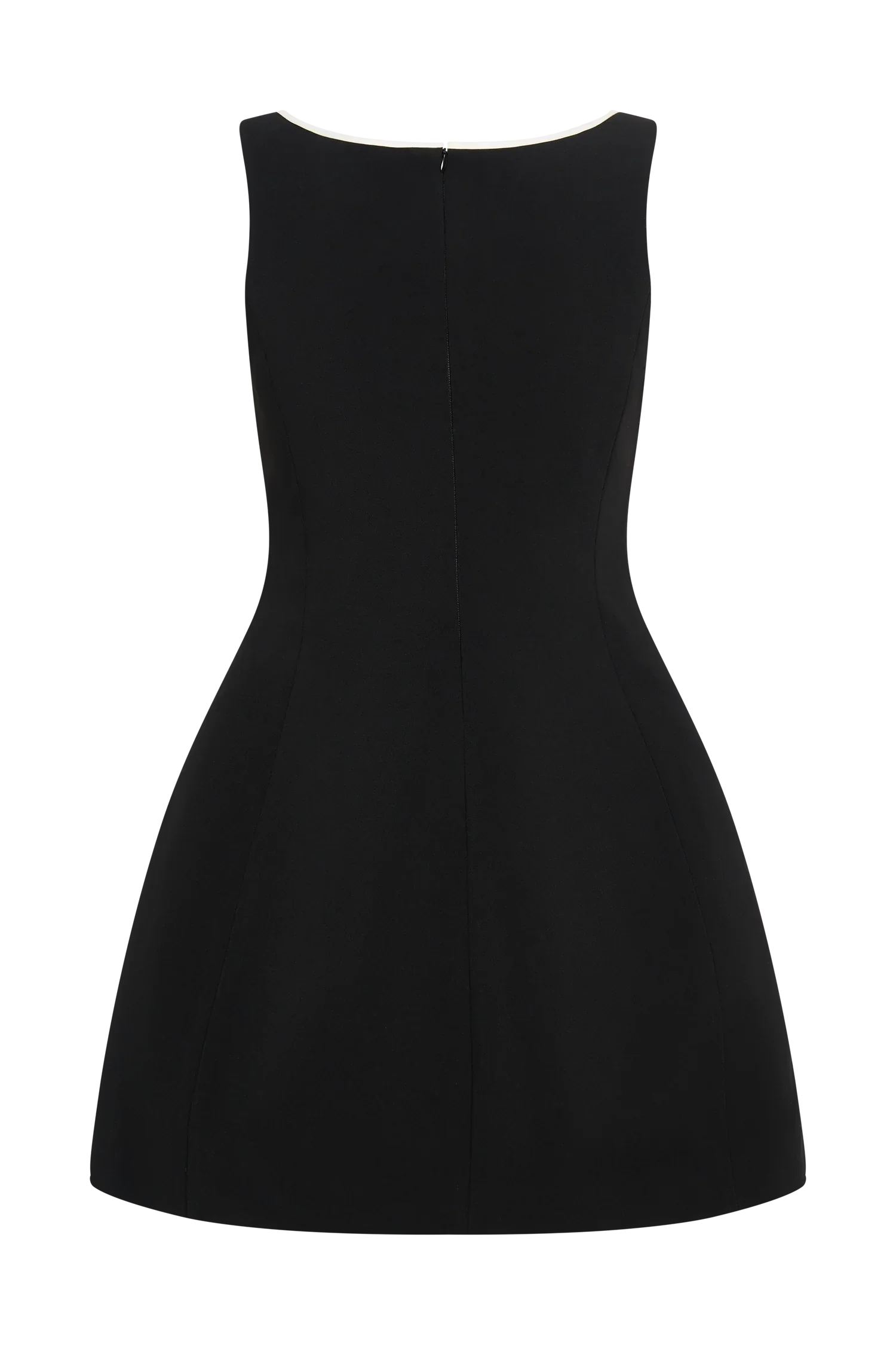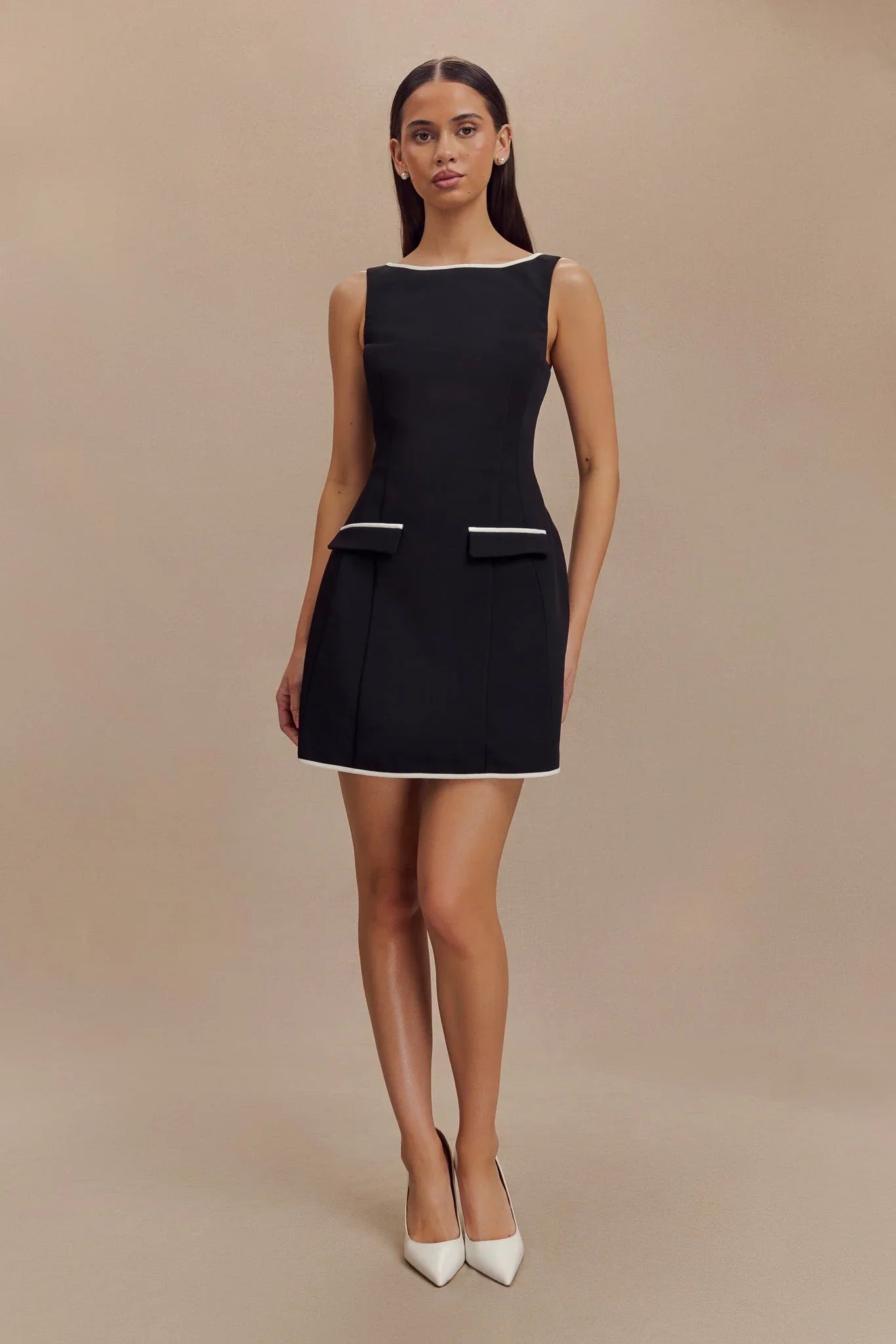 The EVANNA Sleeveless Contrast Suiting Mini Dress combines sleek sophistication with a touch of flair. Its boat neckline and fitted bodice create a flattering silhouette, while the flared hem adds movement and elegance. With a mini length and a lined interior for comfort, this dress is both stylish and practical. The centre back zip closure ensures a secure fit, making this dress a chic choice for any occasion where you want to stand out.