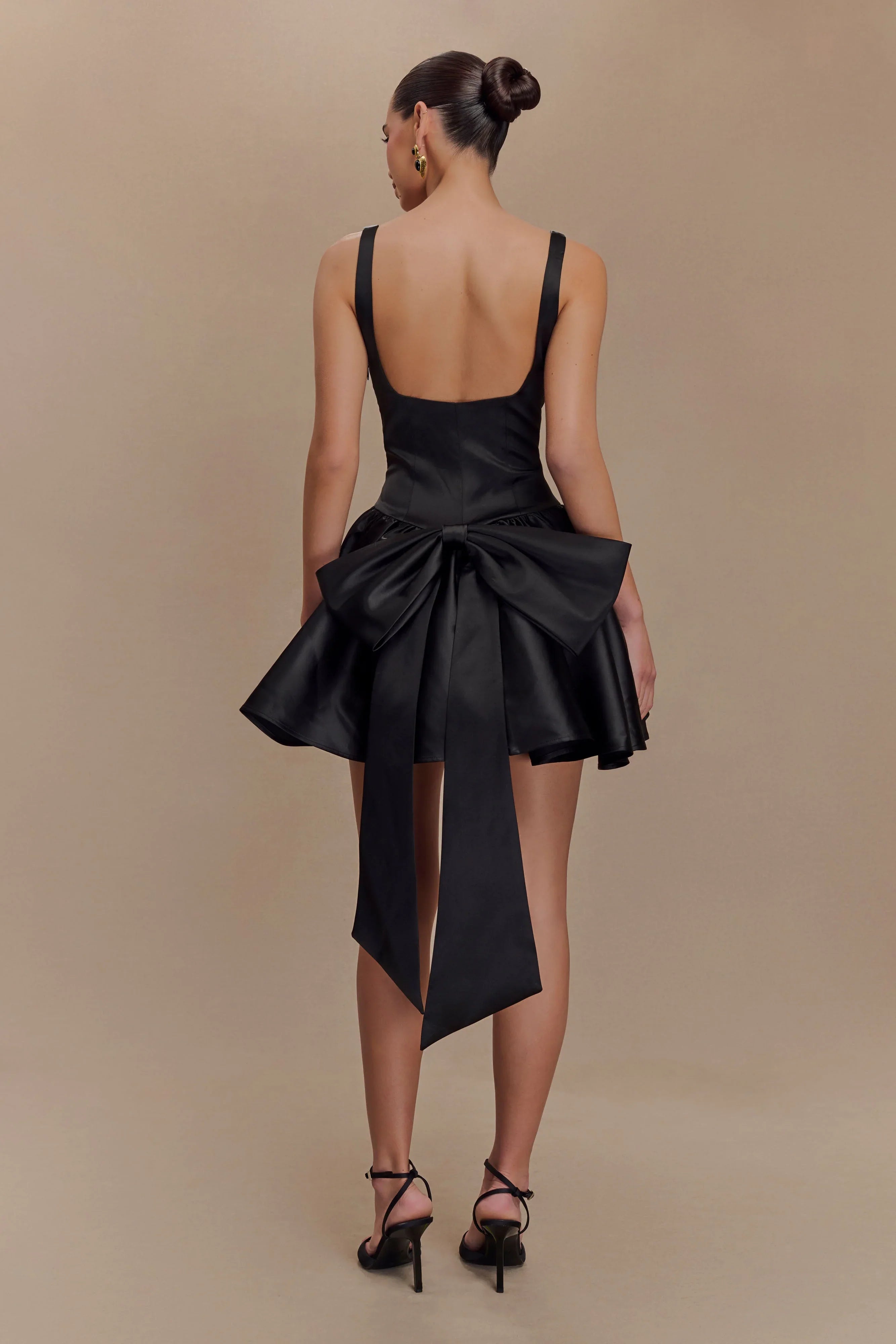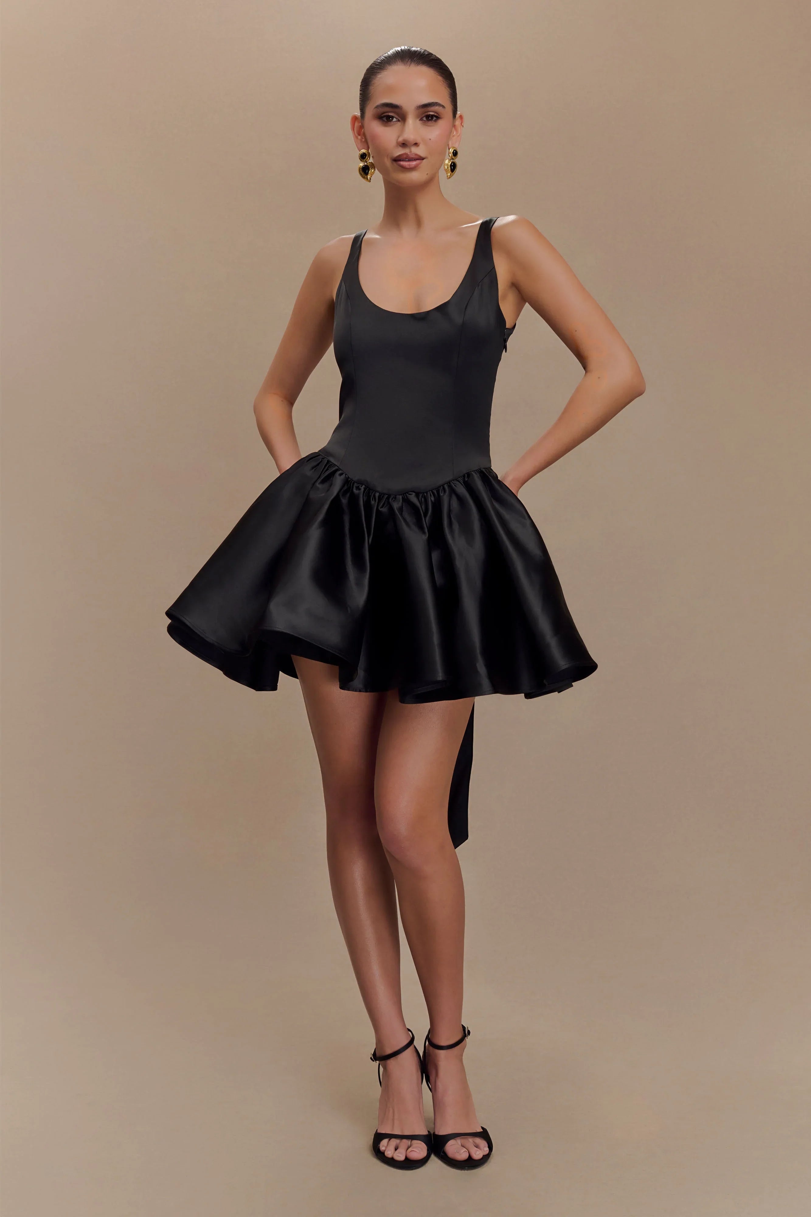 Turn heads in the FELICIA Satin Mini Dress, a flirty and feminine design perfect for special occasions. With a scoop neckline and a structured bodice, this dress provides a flattering fit, while the side zip ensures effortless wear. The full mini skirt, complete with a playful tulle underlay, adds volume and movement, creating a whimsical silhouette that catches every eye. A charming bow detail graces the back, adding a touch of elegance to this stunning piece. Fully lined for comfort, this dress is your go-to for making an unforgettable impression.
