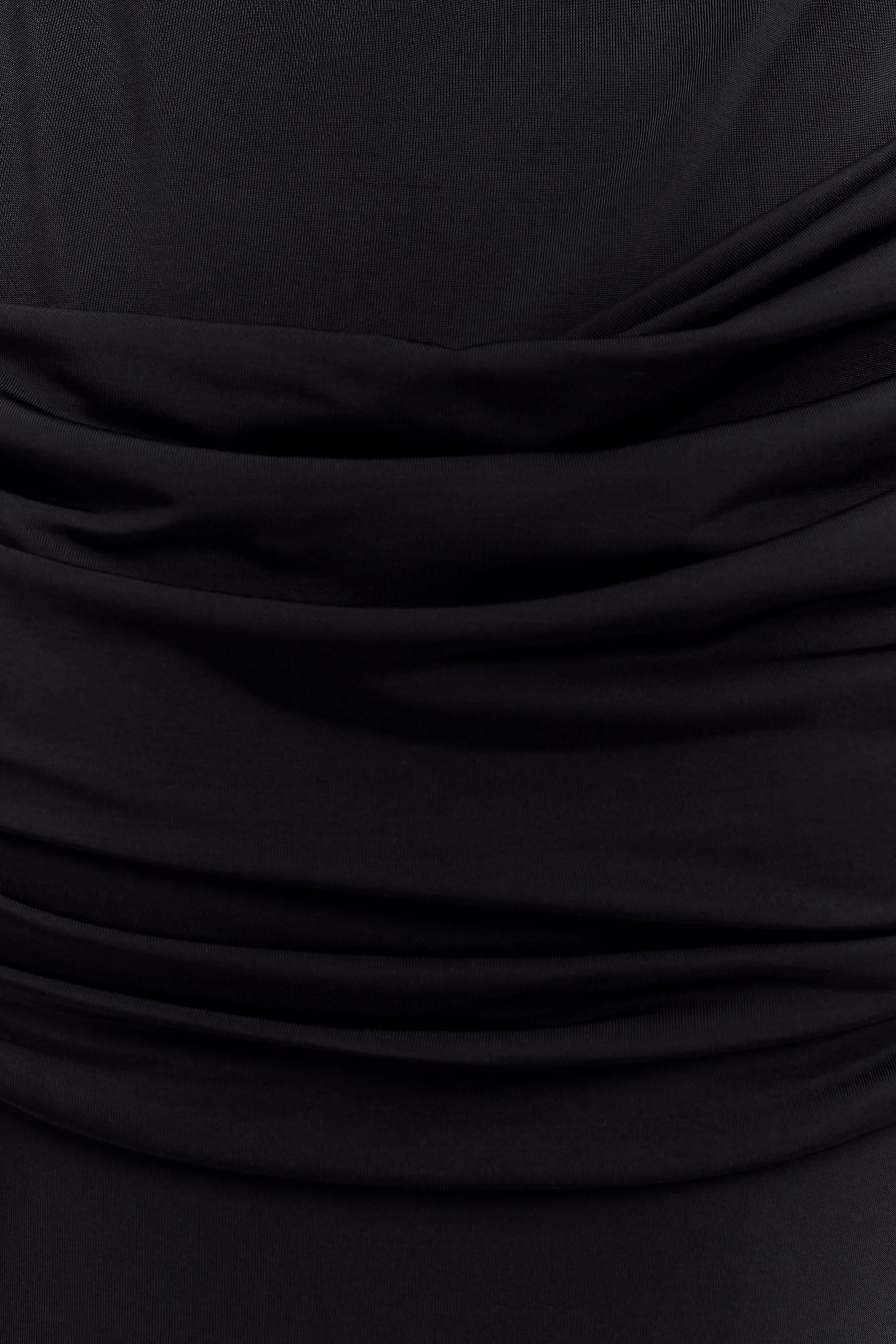 The HENLEY Slinky Drape Maxi Dress is a masterclass in understated glamour. Featuring a refined boat neckline, this bodycon silhouette drapes effortlessly across the bust and waist, creating a fluid, sculptural effect. The open-back design, secured with a delicate button closure at the top, adds a touch of allure, while a draped tie cascades elegantly from the right shoulder for a striking finish. Unlined for a lightweight, slinky feel, this dress is the perfect choice for evening sophistication, black-tie affairs, or modern bridal moments.
