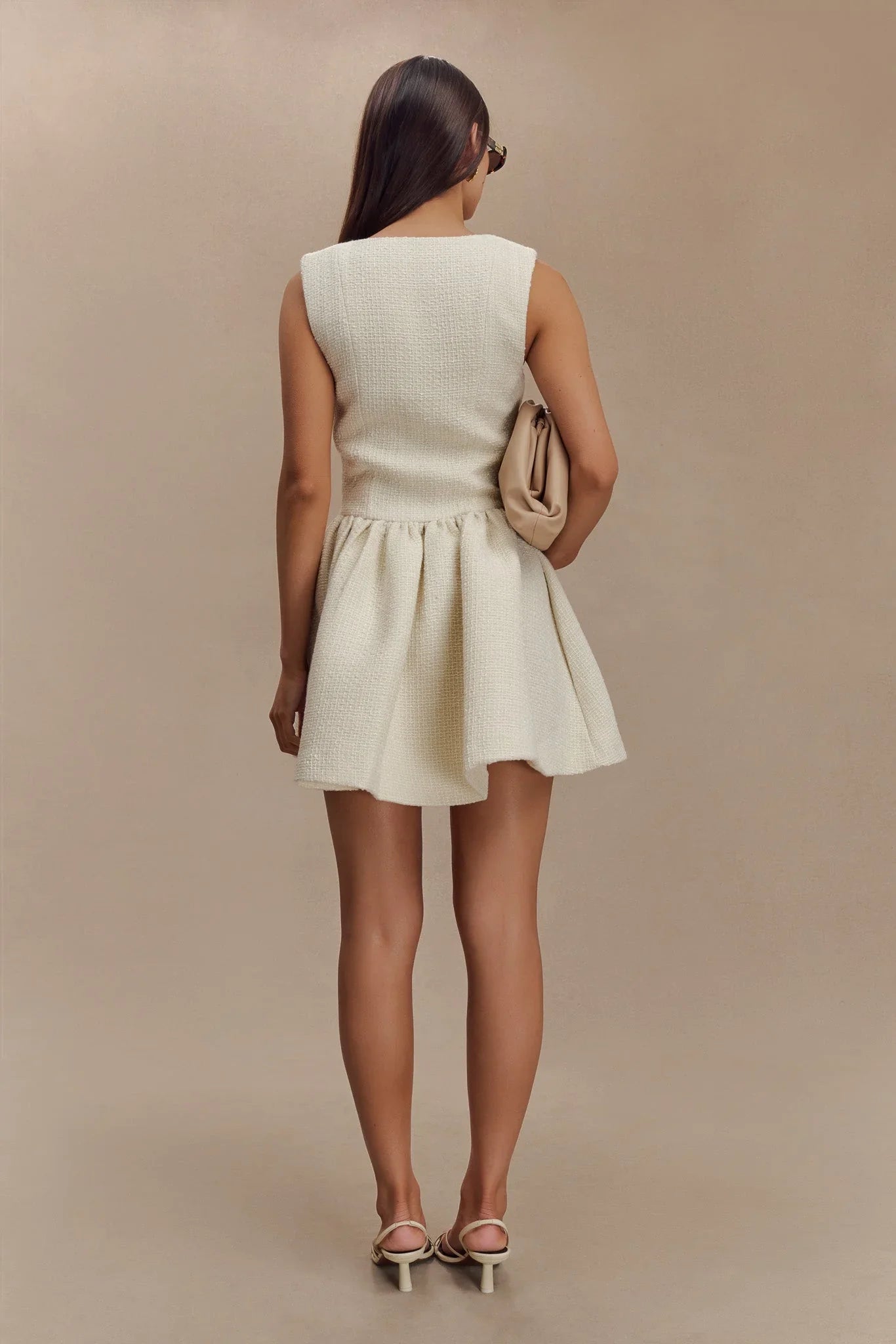 The JENNIFER Boucle Mini Dress is the epitome of chic and modern elegance. This dress features a sophisticated square neckline and princess panel seams that create a flattering silhouette. The shaped waistline accentuates your figure, leading to a playful gathered skirt that falls to a mini length. With a convenient side zipper for easy wear, the Jennifer Boucle Mini Dress is perfect for any stylish occasion.