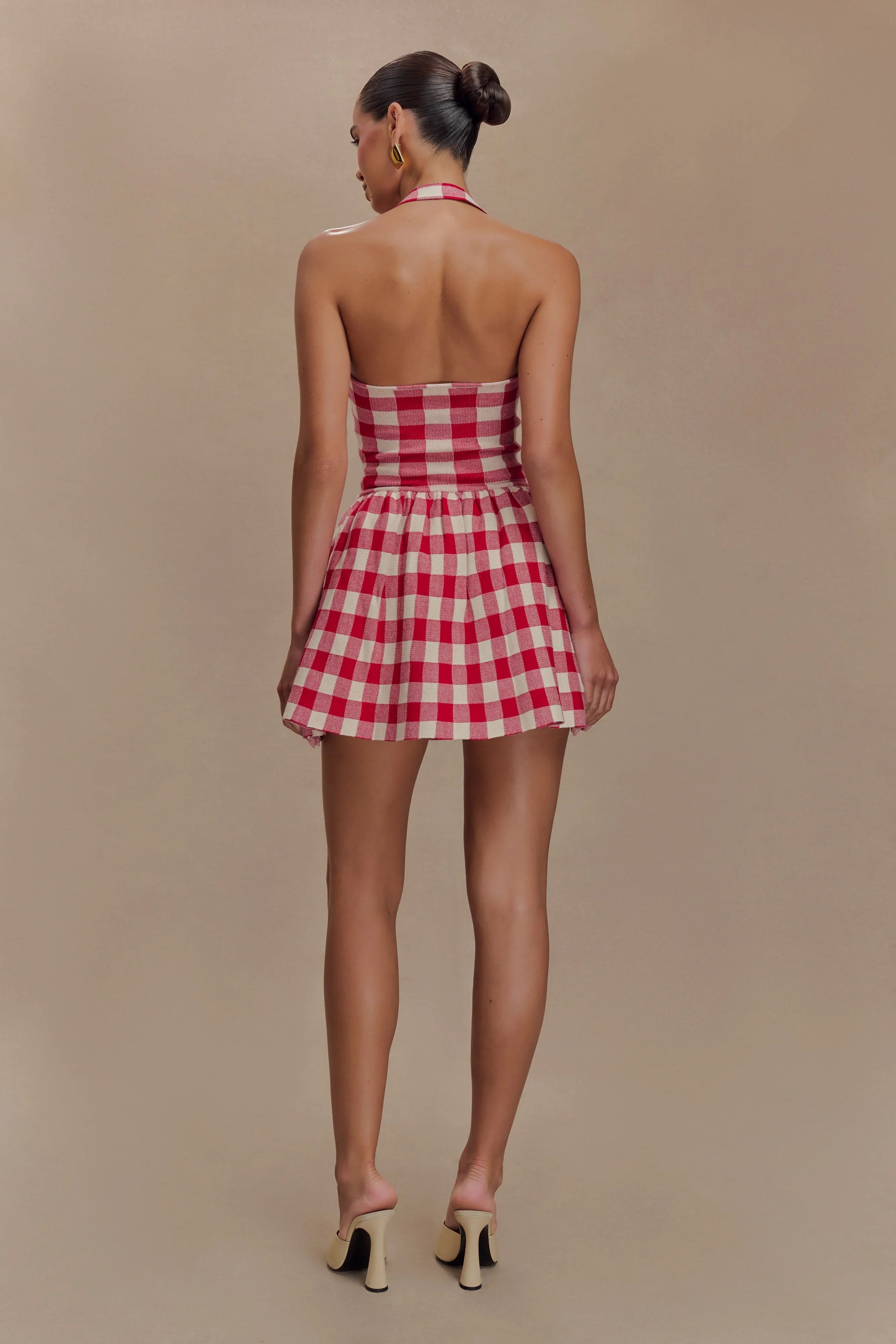 The LINDSAY Halter Knit Mini Dress combines bold structure with delicate details for a chic and playful look. The halter neckline and fitted bodice create a sleek, flattering silhouette, while the gathered skirt with a tulle underlay adds volume and movement. Designed with a mini length and a fitted knit construction, this dress is both comfortable and stylish, making it perfect for any occasion. With its combination of bold lines and soft, flowing elements, this dress is sure to turn heads wherever you go.