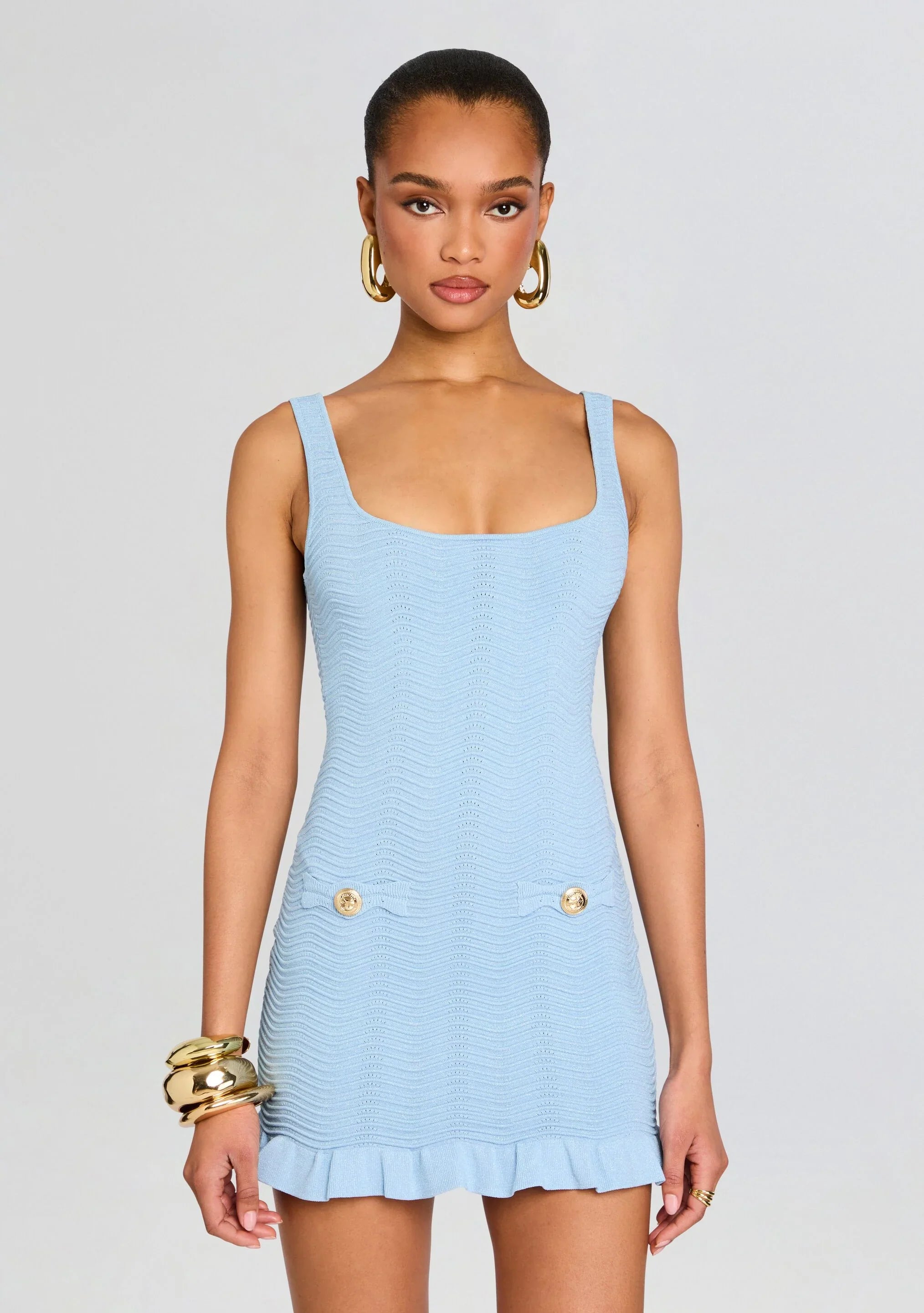 Elevate your look with the Loulou Knit Dress. Crafted from a metallic knit fabric, this bodycon dress features a delicate bow detail for a touch of flare.Perfect for any occasion, its figure-hugging silhouette will enhance your natural curves and make you stand out. Experience luxury with this must-have dress. Shown here in Metallic Powder Blue.
