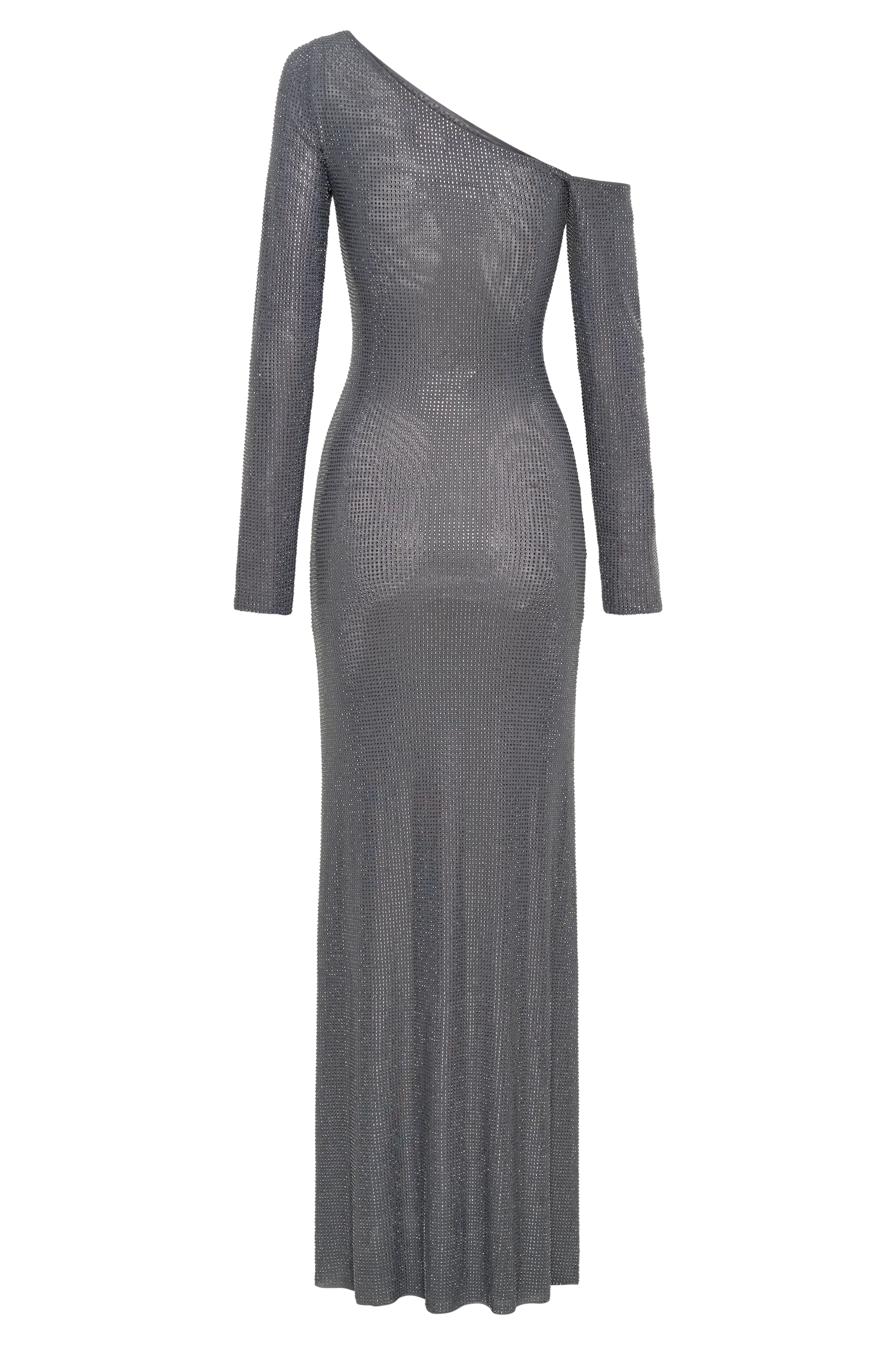 The MARCIA Diamante Long Sleeve Maxi Dress is a striking blend of glamour and elegance. Designed with an asymmetrical neckline and long sleeve, this bodycon dress hugs your curves to perfection. The intricate diamante mesh fabrication glistens with every move, offering a dazzling touch to this timeless piece. Crafted from a stretch fabric and mesh-lined for comfort, the dress moves with you, ensuring both style and ease. The maxi length adds an air of sophistication, making it the ideal choice for evening events, parties, or any occasion where you want to shine with confidence.