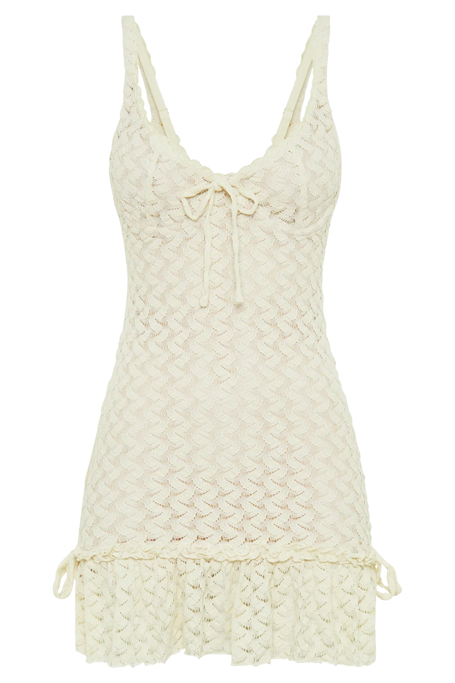 Embrace elegance with the MARIETTA Cupped Lace Mini Dress, designed with flattering bust cups and adjustable straps for a customised fit. Featuring an A-line skirt, this dress exudes feminine charm and grace. Unlined and knitted, it offers comfort and style, perfect for any occasion. Complete with frill and bow detailing, the Marietta dress adds a playful touch to your ensemble.