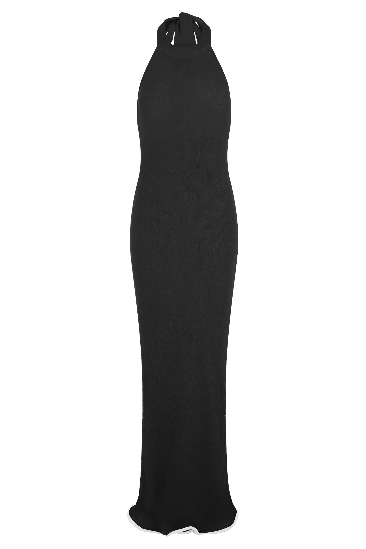 The MELODIE Halter Knit Maxi Dress is the perfect combination of sophisticated elegance and effortless charm. Featuring a flattering halter tie neckline, this dress offers a customisable fit that accentuates your shoulders and neckline. The open back adds a touch of allure, while the fitted silhouette hugs your curves in all the right places for a stunning look. With a maxi length, it exudes graceful movement, and the ripple hem detail adds an unexpected, chic touch.