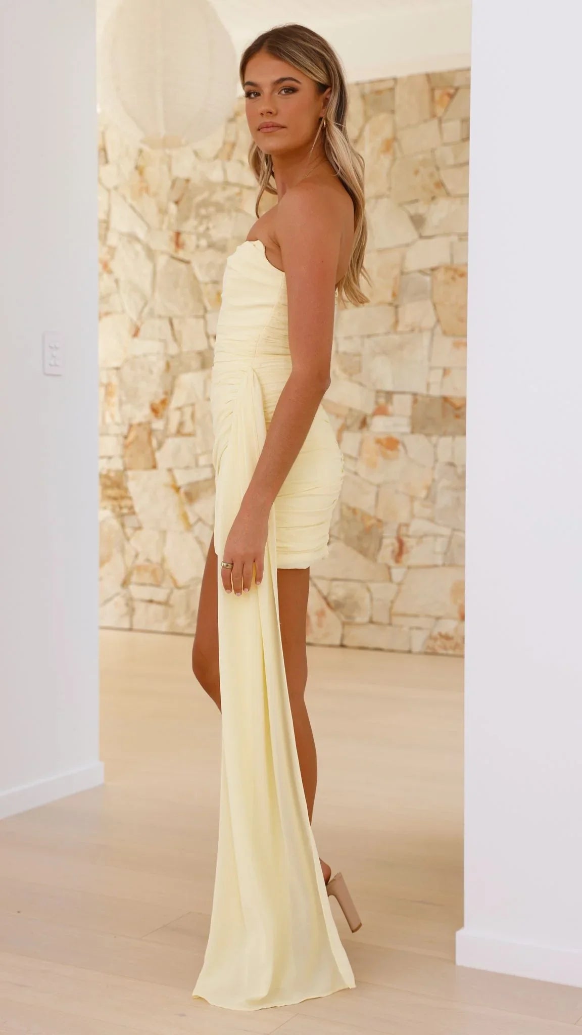 Featuring a subtle scooped neckline, boning in the bodice and a flowing sash, our Night Lover Dress is the ideal choice for a fun and flirty wedding look.