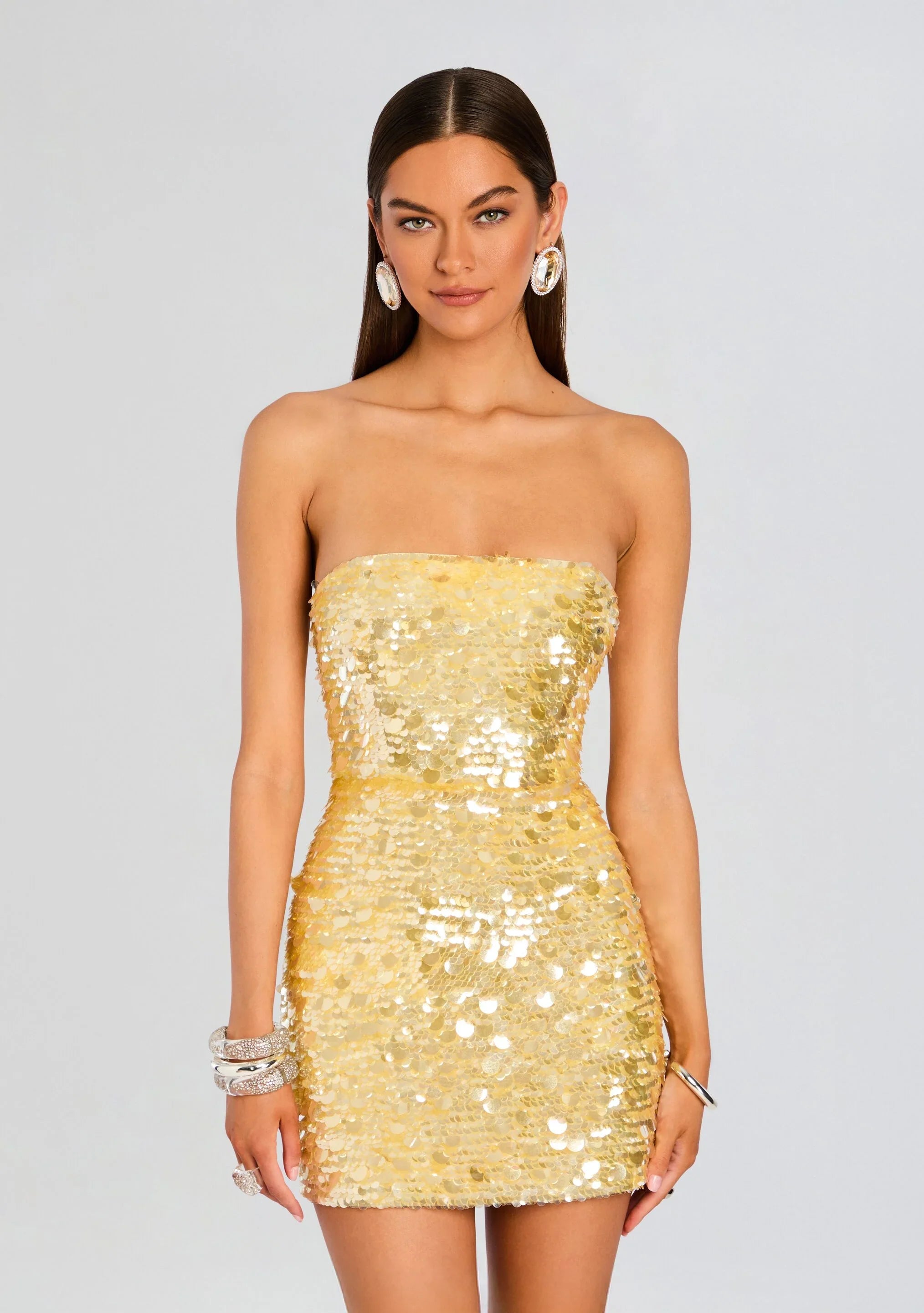 Step into the spotlight with our Nolia Dress – a dazzling ensemble that defines glamour and allure. Perfect for making a stunning entrance, this dress offers a chic and trendy look, radiating confidence and charm. Shown here in Yuzu.