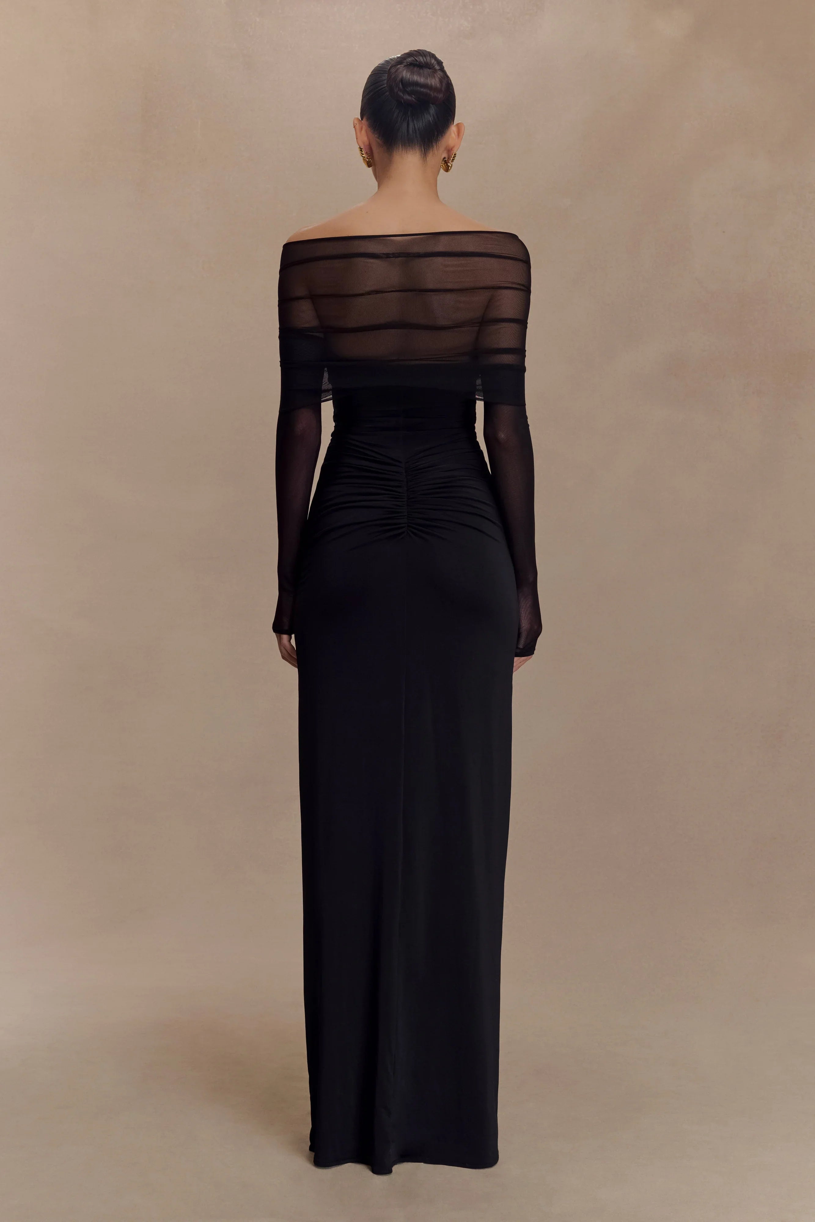 Step into the spotlight with the RAFAELLA Slinky and Mesh Maxi Dress, a statement piece that effortlessly blends texture and form. Featuring a plunging V neckline and mesh sleeves with a sheer shoulder panel, this design contrasts with a jersey bust and skirt for a flattering, body-hugging fit. Front and back gathering sculpt the silhouette, while a bold front cutout adds just the right amount of allure. Fully lined with a straight skirt shape and maxi length, this dress is your go-to for after-dark sophistication with a modern twist.