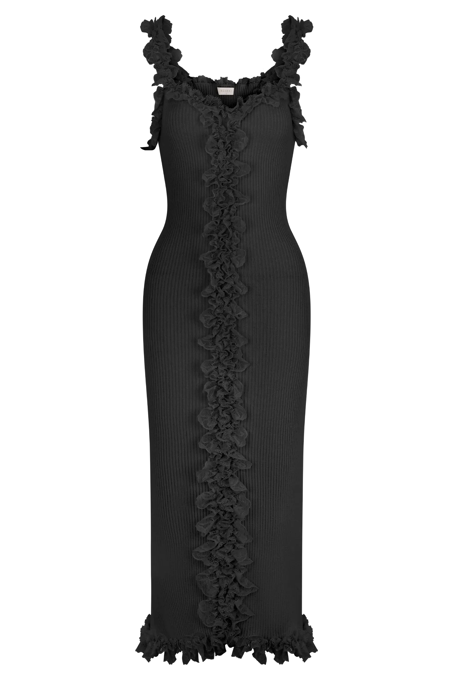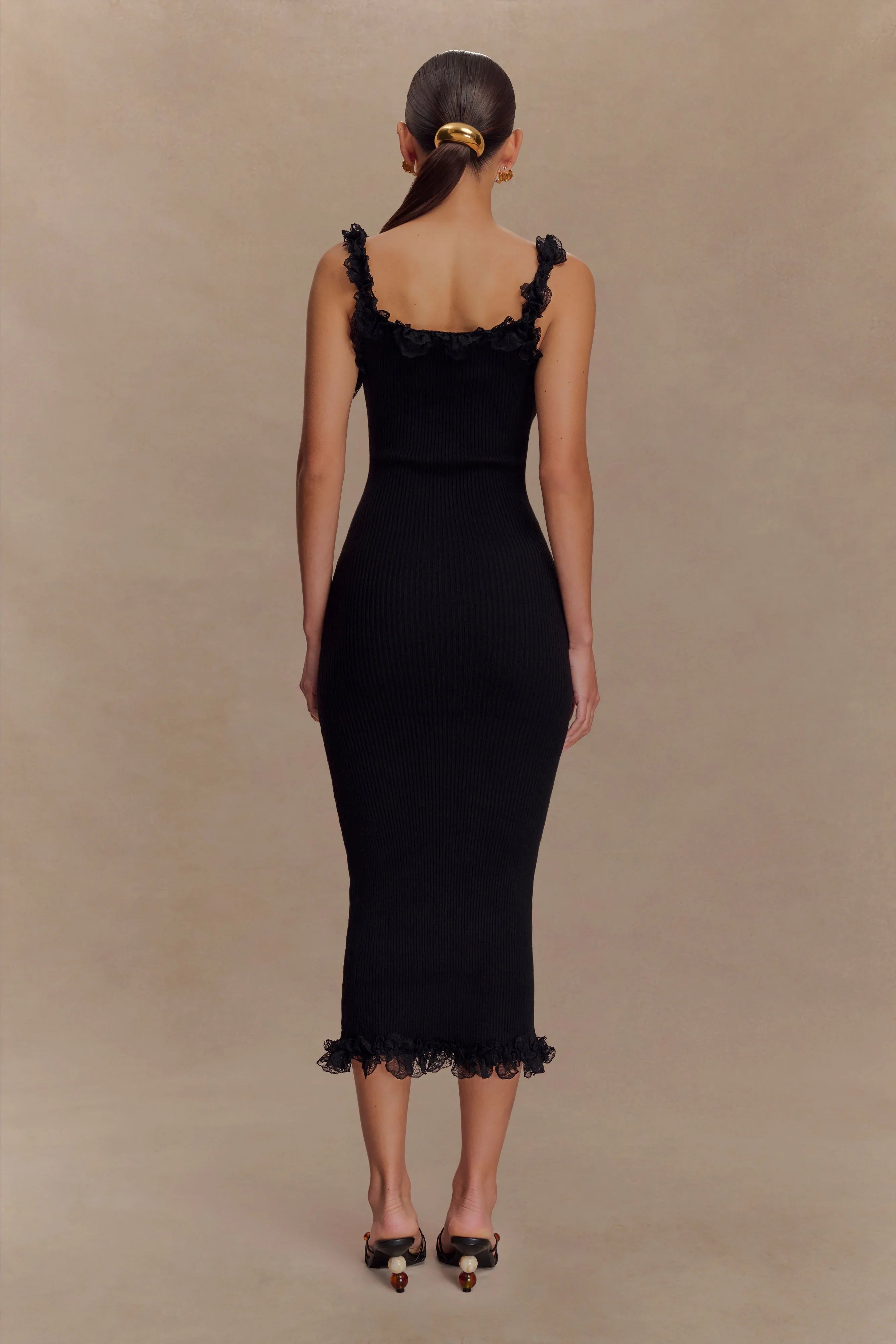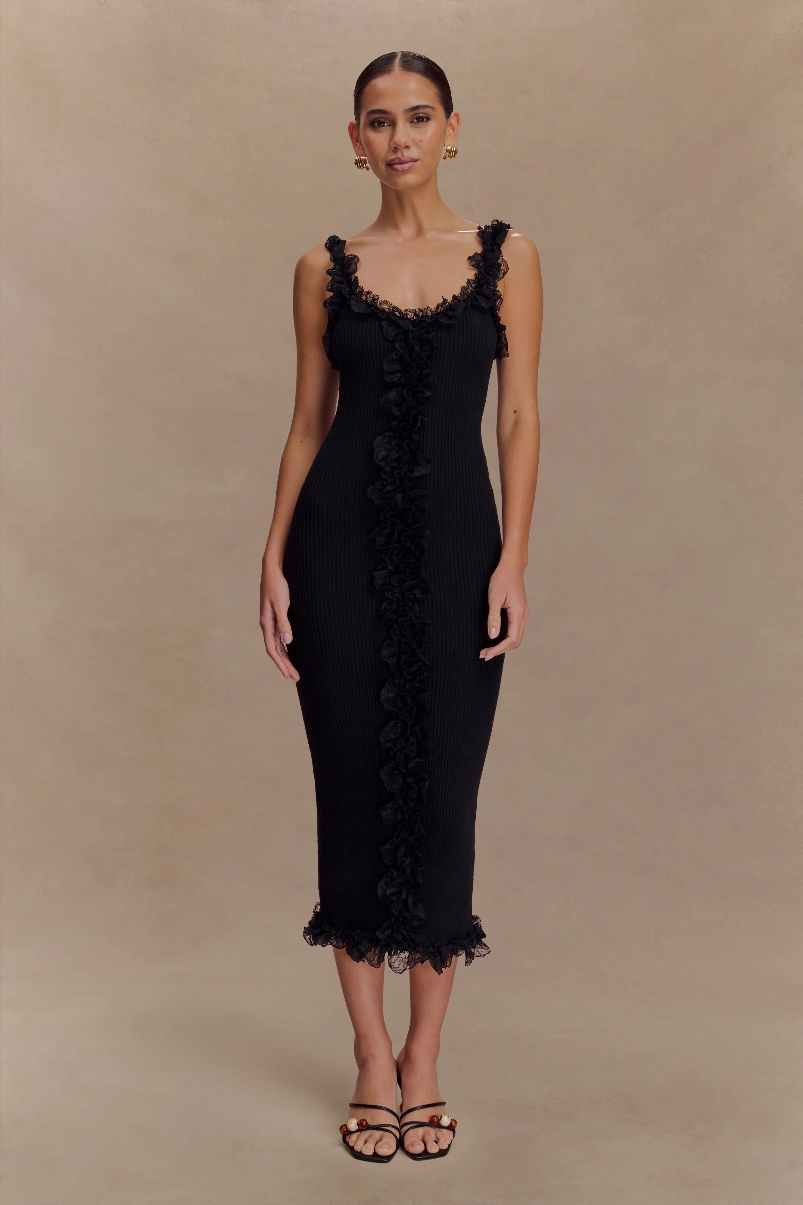 Home Shay Lace Ruffle Knit Midi Dress - Black