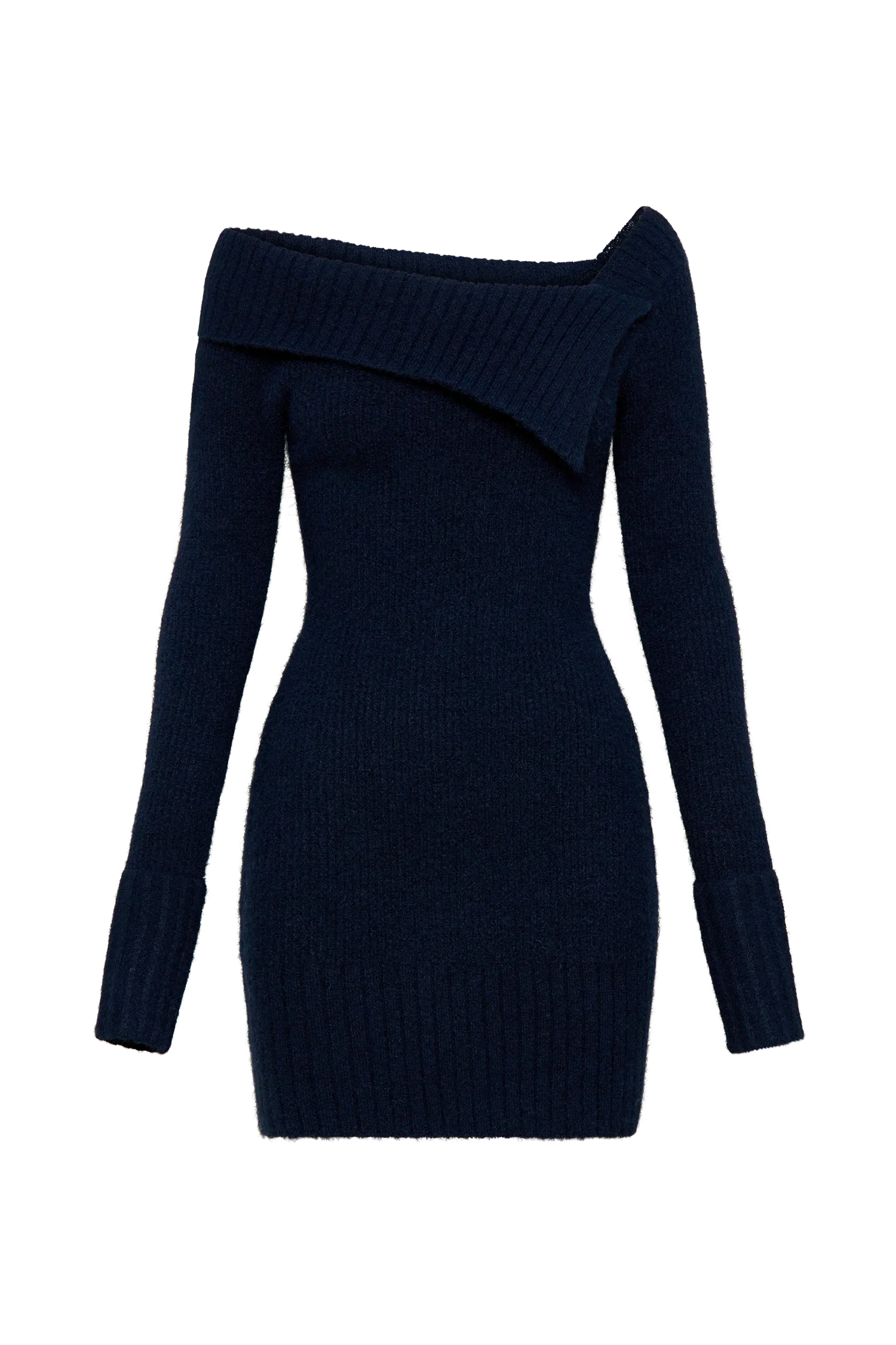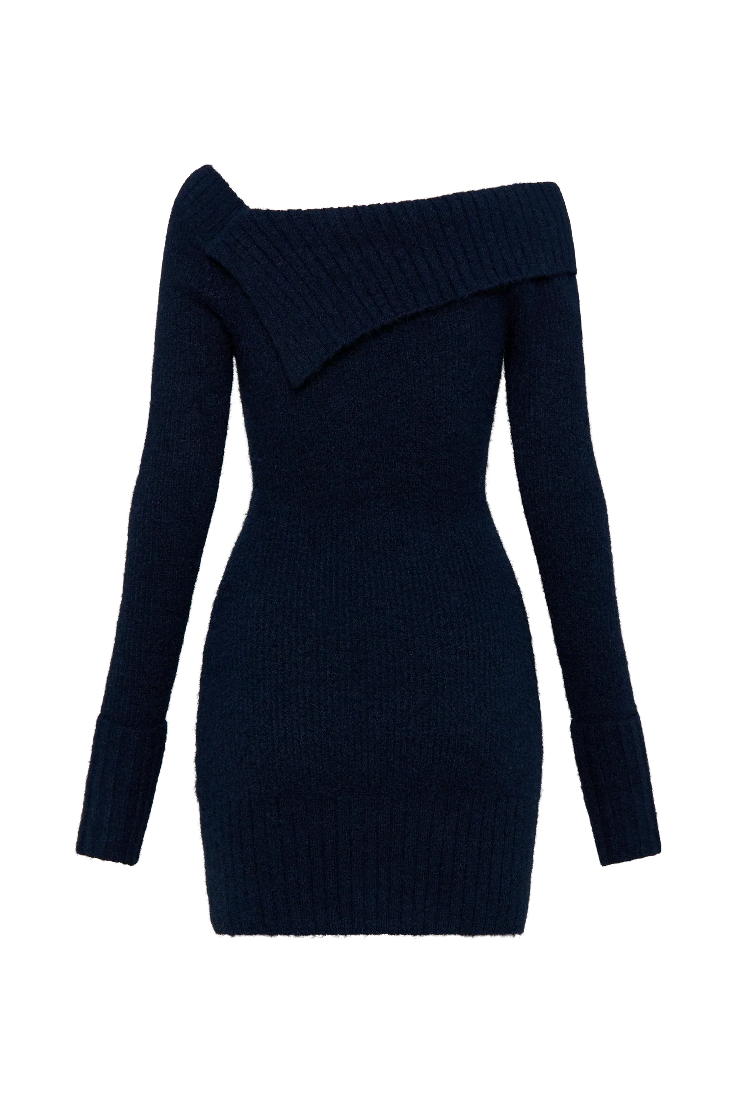 The STEPHANIE Asymmetric Knit Mini Dress offers a contemporary twist on classic design with its striking asymmetrical neckline and ribbed overlay. Featuring long sleeves and ribbed cuffs, this mini dress combines warmth with modern style. The unlined knit construction ensures a lightweight, comfortable fit that drapes beautifully. With its mini length and unique neckline detail, the Stephanie Dress is perfect for making a fashionable statement at any event, seamlessly blending comfort and edgy elegance.