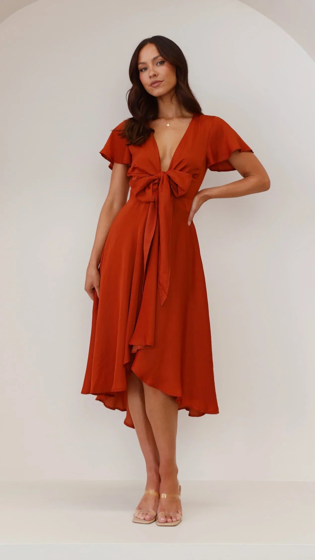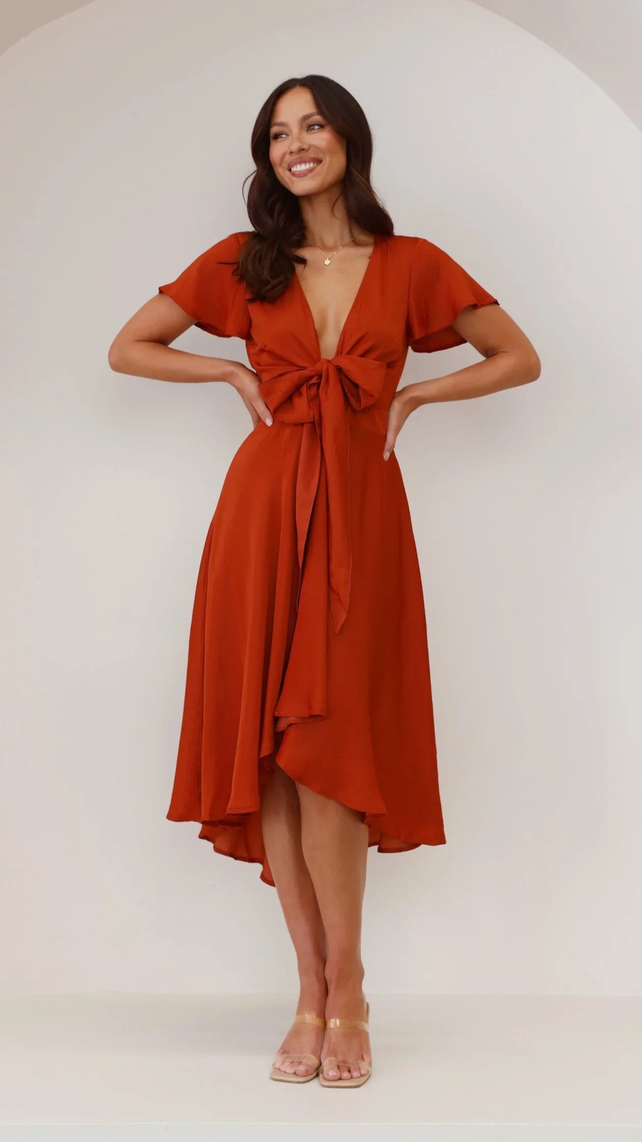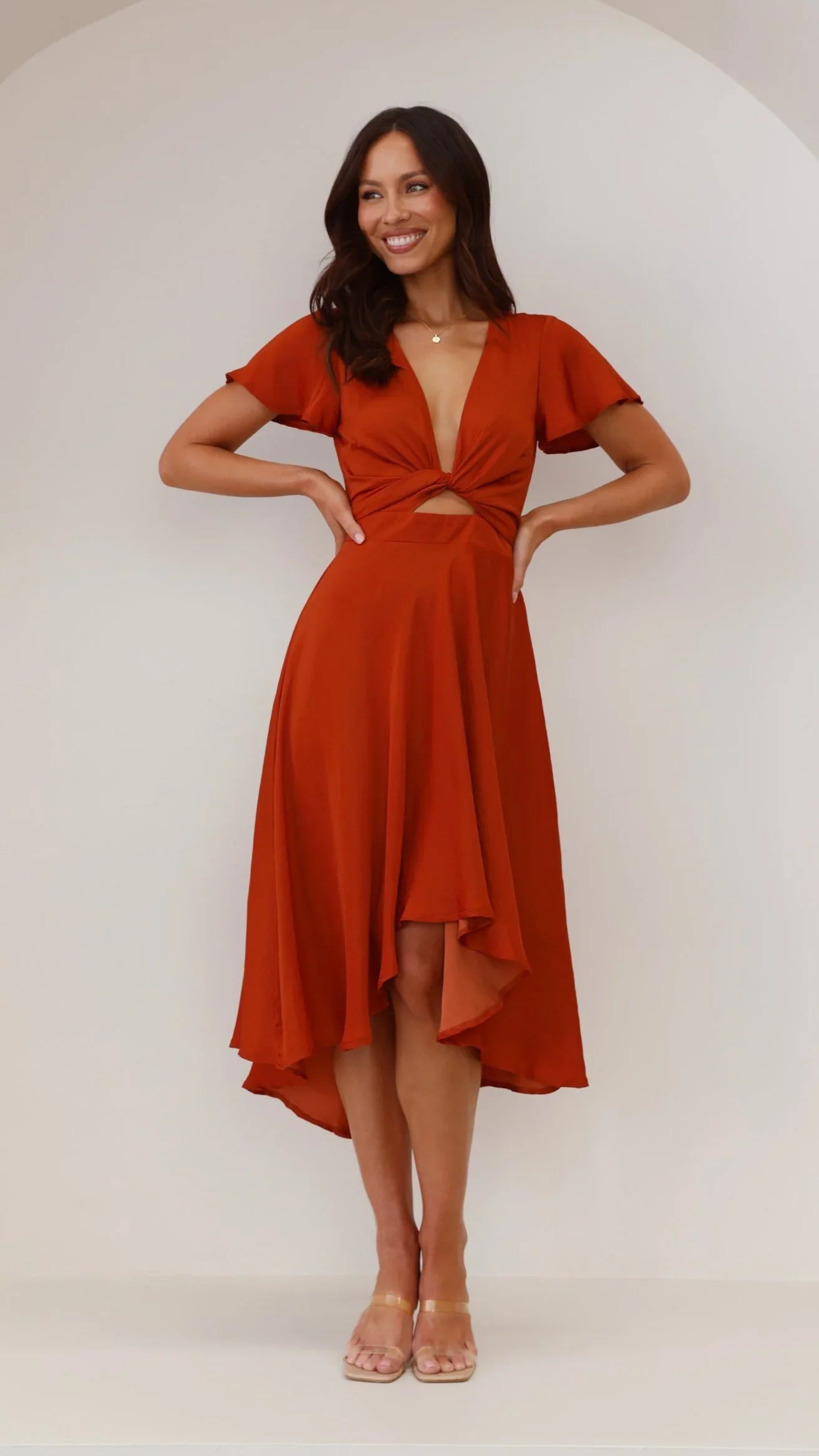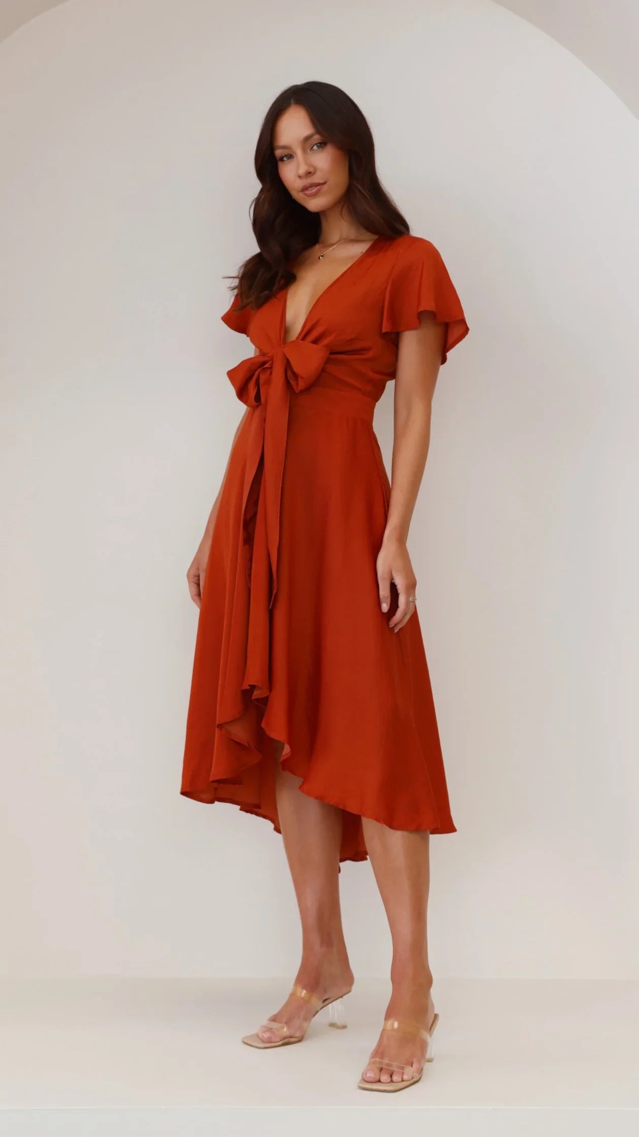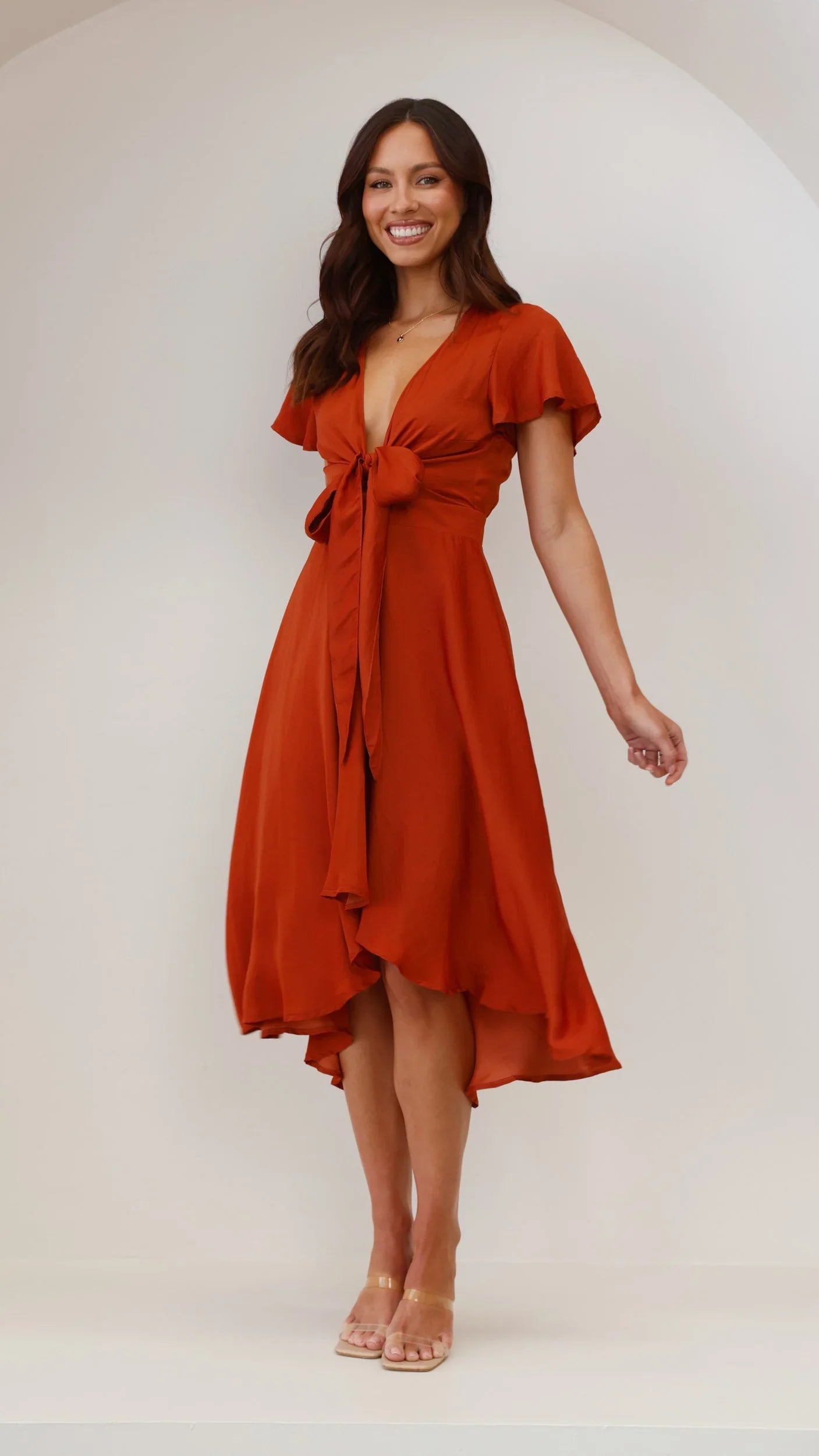 Our Sunny Daze Dress is a must have occasion piece, perfect for that upcoming party or wedding! This dress features butterfly sleeves, a soft satin feel and high low flowy skirt with a tight waistband. This piece will be your go to dress for impressing at any event, we suggest pairing with our and to finish the look.