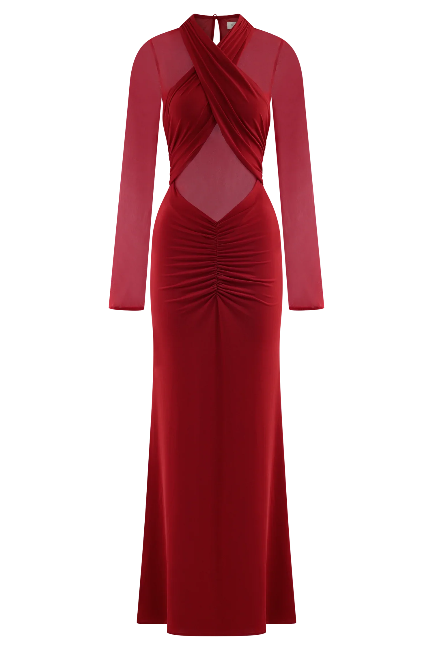 The TANIA Slinky and Mesh Long Sleeve Maxi Dress combines elegance with sultry sophistication. Featuring a high neckline and a daring mesh bodice, this dress highlights your curves with a jersey halter overlay that adds a touch of texture and contrast. The long sleeves provide a sleek, balanced look while the low-rise skirt with centre-front ruching creates a flattering silhouette. The dramatic fishtail hem shape adds to the dress's allure, offering a fluid, graceful movement as you walk. Designed with a maxi length for ultimate glamour, this dress is perfect for making a statement at any formal or special occasion.
