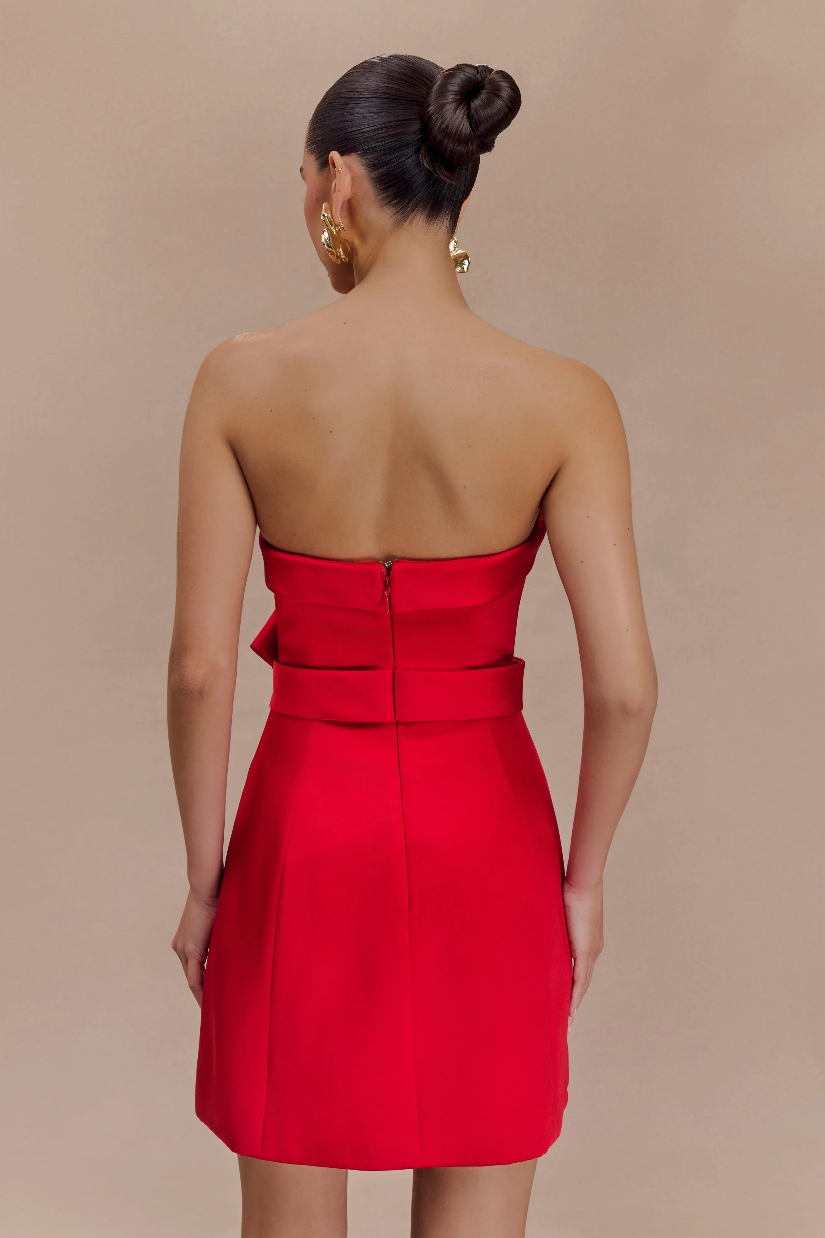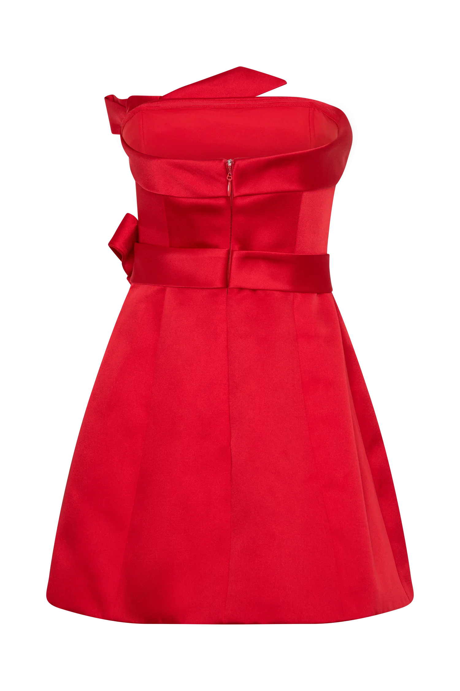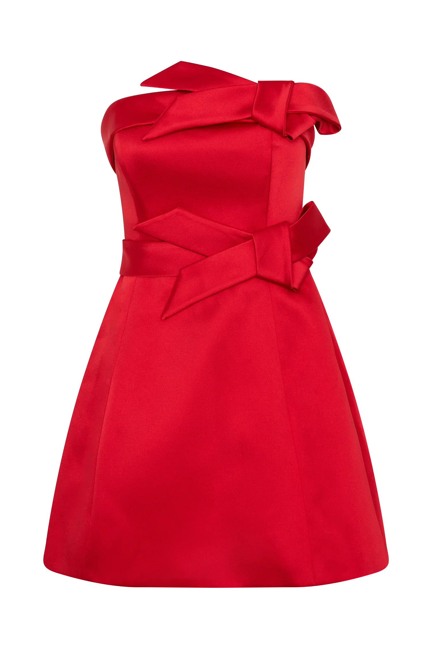 Make a statement in the TATIANA Satin Strapless Bow Mini Dress, a stunning blend of playful charm and refined elegance. This dress features a flattering strapless neckline and a structured silhouette that beautifully highlights your figure. The captivating bow detail at both the chest and waist adds a whimsical touch, creating a striking focal point that enhances your look. With a centre back zip for a seamless fit and a fully lined interior for comfort, this dress is ideal for special occasions or memorable nights out. Elevate your style with this enchanting mini dress, designed to make you feel confident and chic.