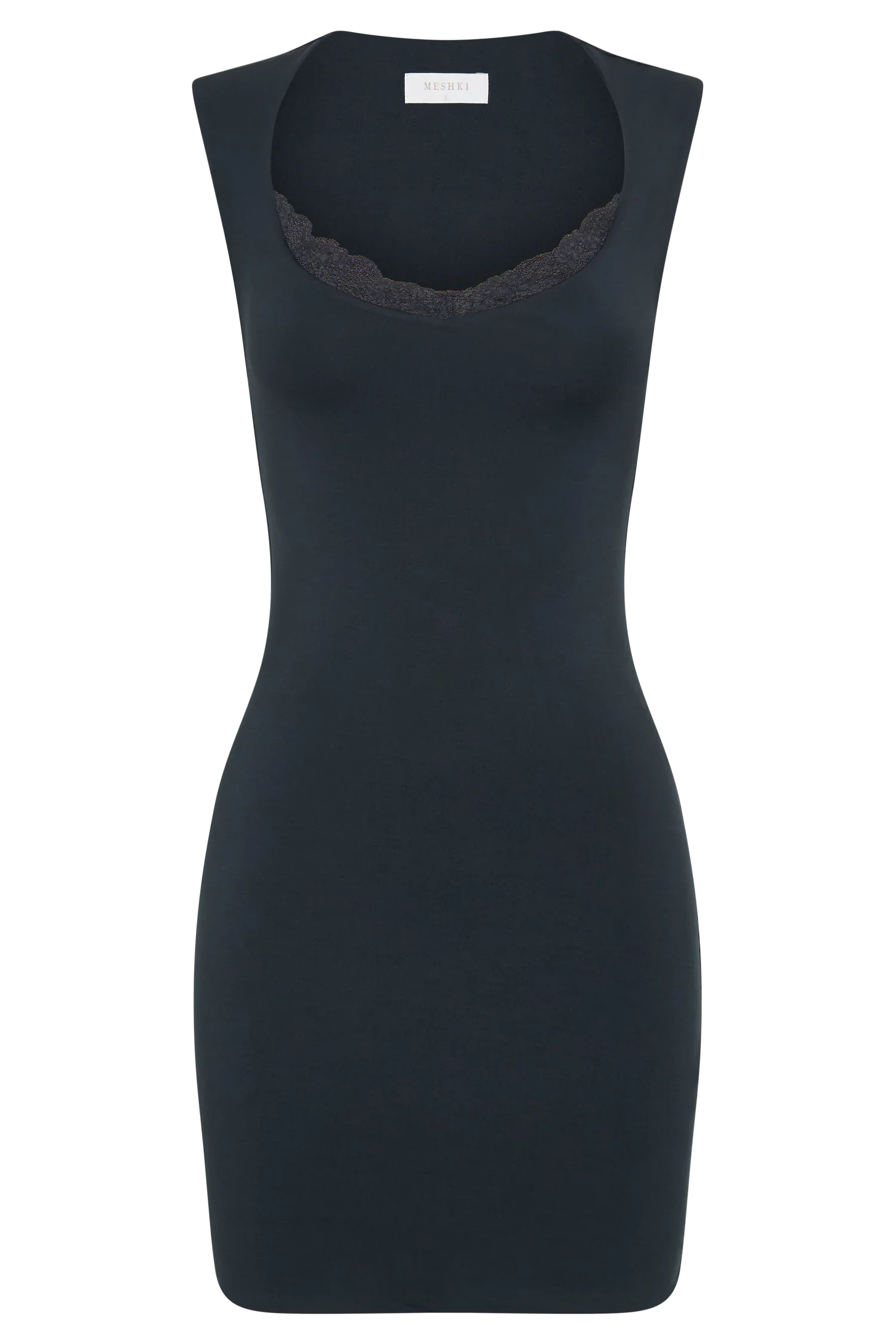 The TATIANNA Lace Trim Modal Mini Dress effortlessly combines feminine charm with a sultry silhouette. Featuring a flattering princess neckline and delicate lace detailing at the bust, this mini dress exudes elegance in every detail. The cap sleeves add a touch of softness, while the bodycon fit highlights your curves for a striking effect. Fully lined for comfort and crafted in a mini length, this dress is perfect for special occasions or nights out. Pair it with heels and minimal accessories for a look that radiates sophistication and confidence.
