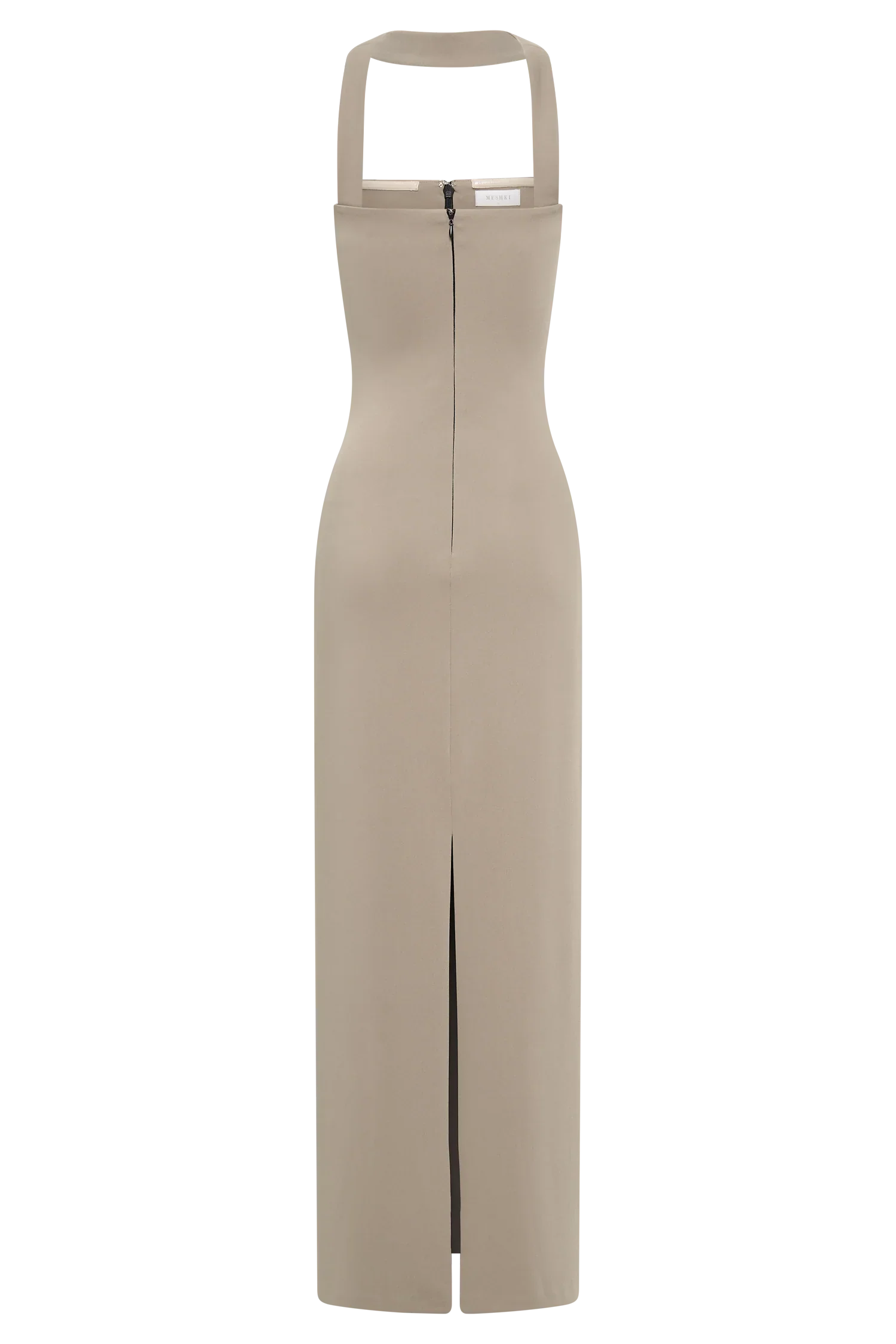 The VELMA Halter Collar Maxi Dress with Overlay is a striking blend of elegance and modern sophistication. Featuring a straight neckline and a halter design, this dress showcases a front collar detail that adds a refined touch. The fitted bodice enhances your silhouette, while the maxi length and back vent offer graceful movement and a dramatic effect. The back zip closure ensures a seamless fit, making the Velma Dress a perfect choice for formal events or special occasions where you want to make a memorable impression.
