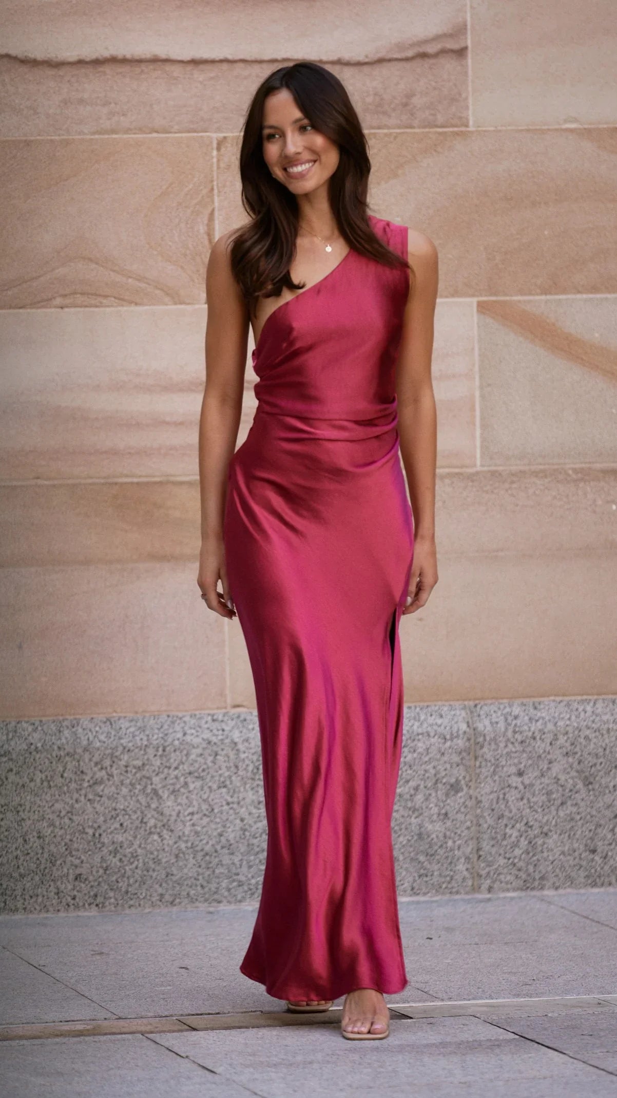 Crafted with elegance in mind, the Victoria Maxi Dress will elevate your style to new heights. Featuring a chic one shoulder design and a gathered waist, this dress provides both comfort and sophistication. With a knee high side leg split and invisible side zipper, this maxi length dress is perfect for any occasion.