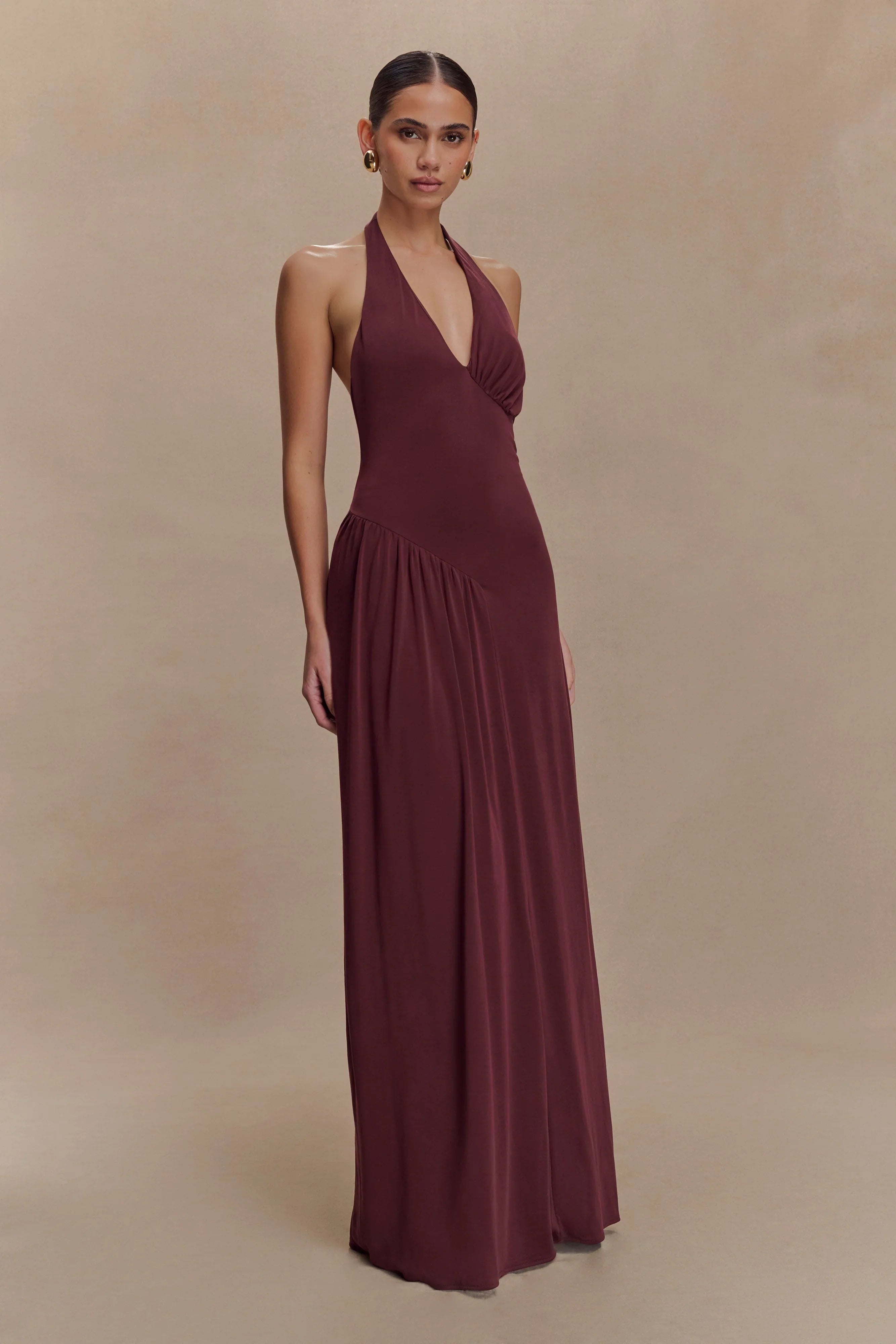 The YELENA Ruched Halter Maxi Dress is the epitome of refined ease. Designed with a halter neckline and softly gathered bust, it skims the body with gentle ruching at the waist before falling into a straight, relaxed skirt. Partially lined for breathable wear, this dress blends understated elegance with all-day comfort — perfect for sun-drenched afternoons and moonlit moments alike.