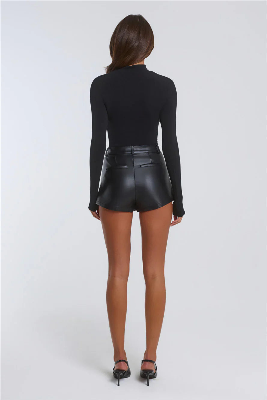 Turn up the edge with the Your Temptation Faux Leather Mini Shorts! Featuring stretch faux leather, high-waisted fit, side pockets, and faux welt pockets at the back, these shorts are perfect for nights out. Pair with a top and heels for a sleek, statement-making look.